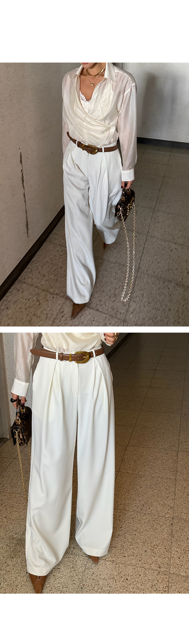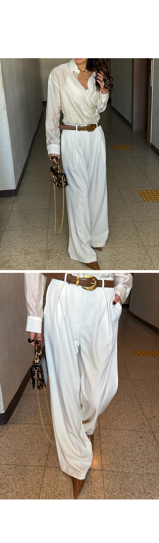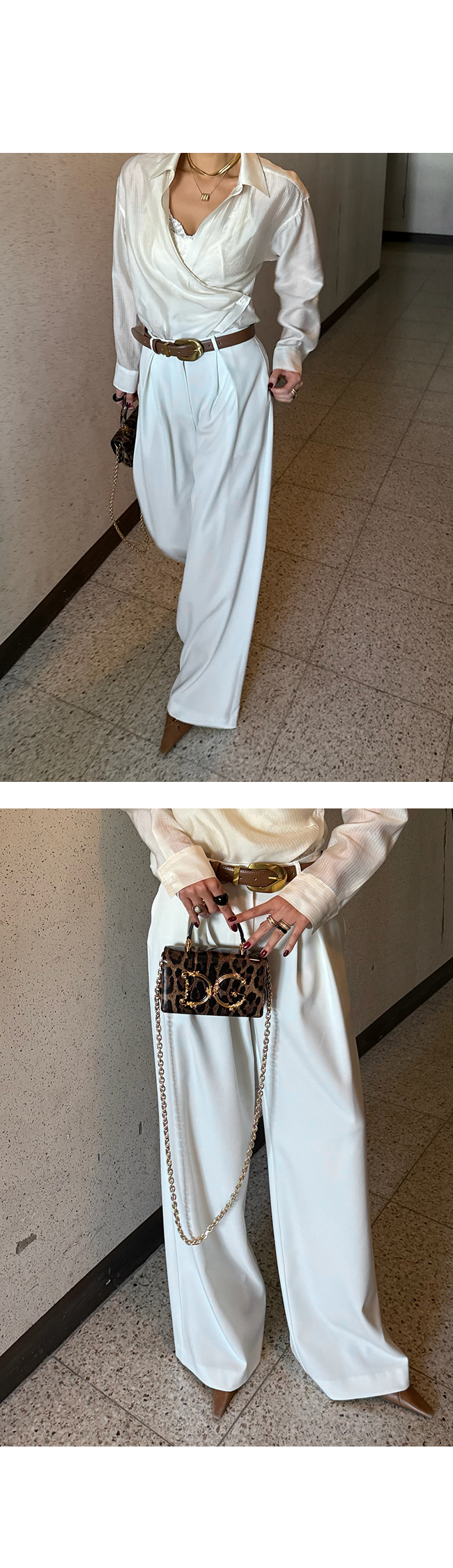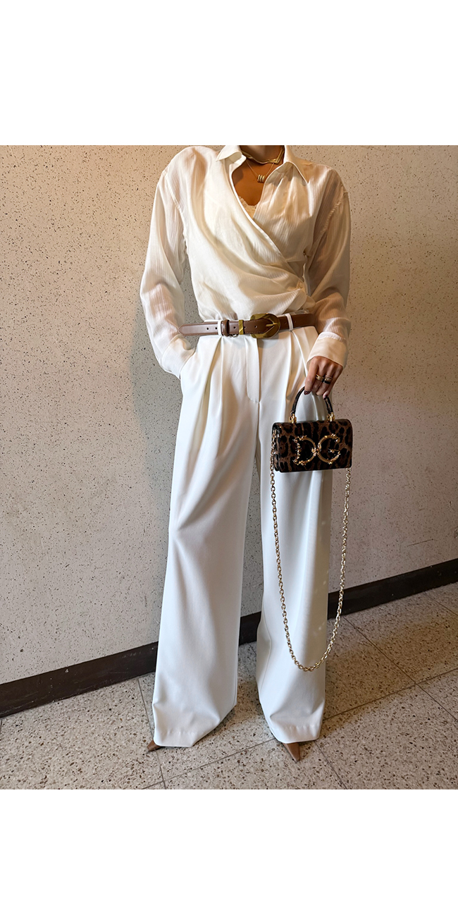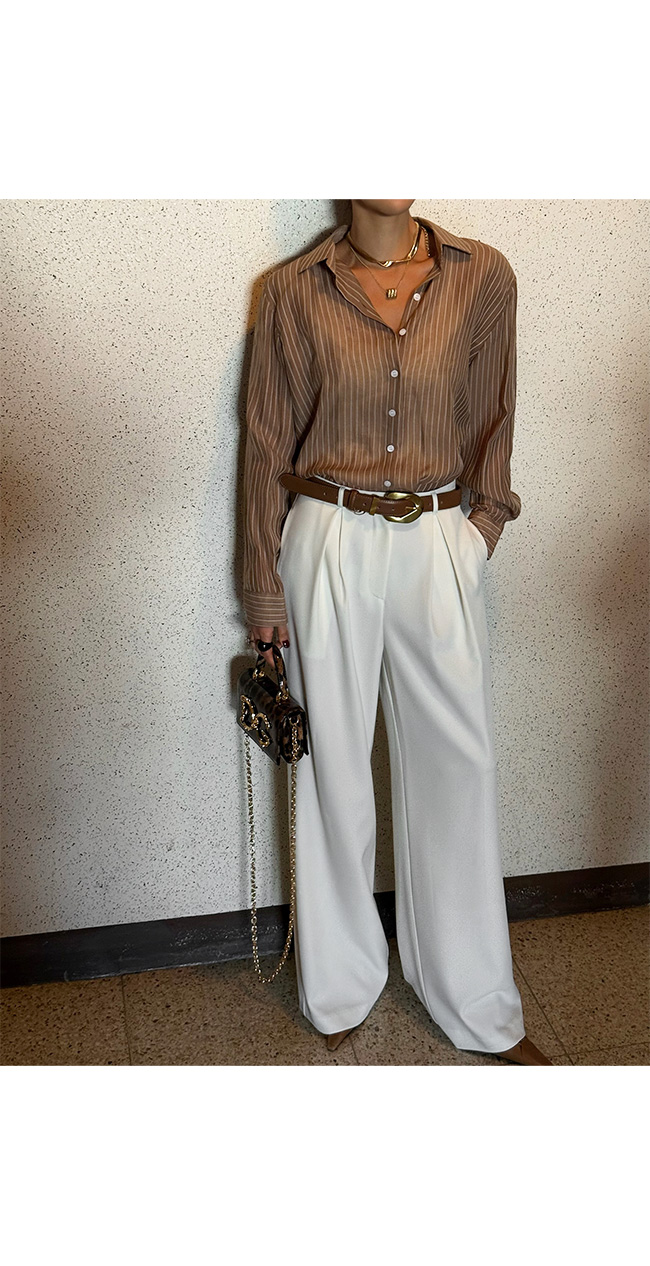 벨트와 함께 스타일링하면 포인트 연출도 손쉽게 가능합니다.