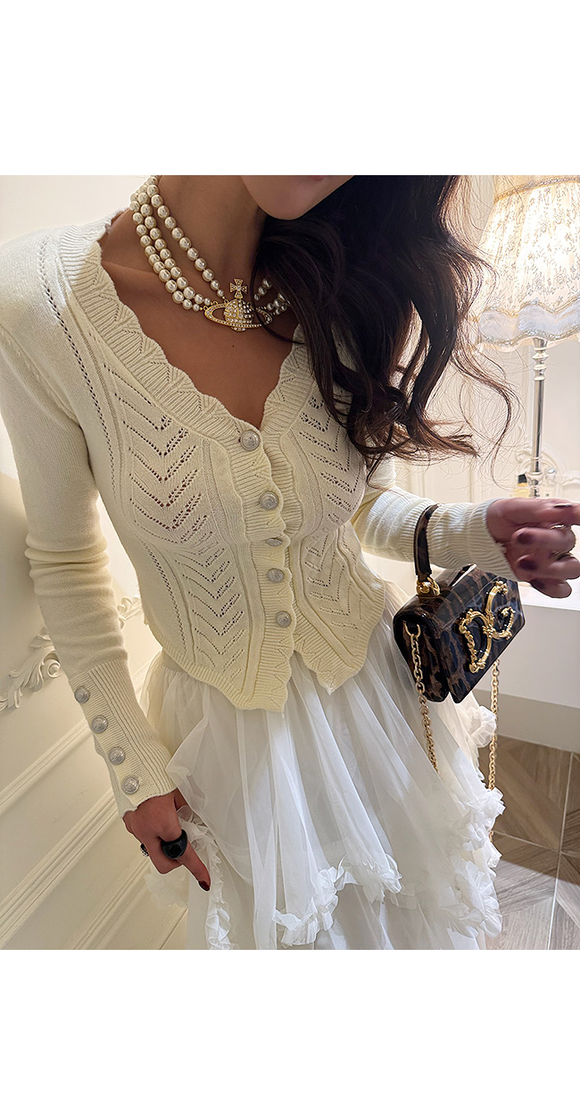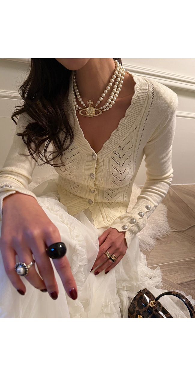 쇄골 라인을 예쁘게 드러내는 브이넥 디자인으로