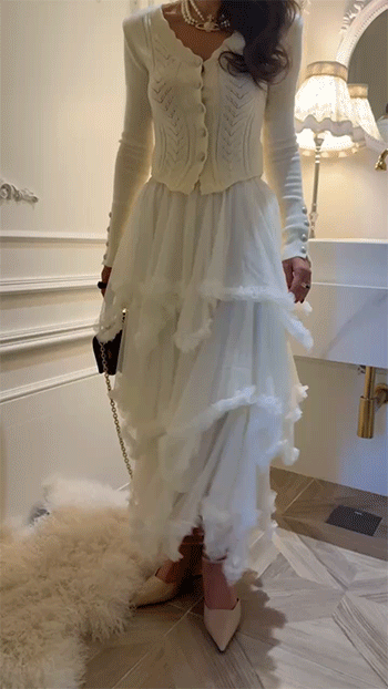 단추를 모두 잠가 니트 탑처럼 연출해도,
