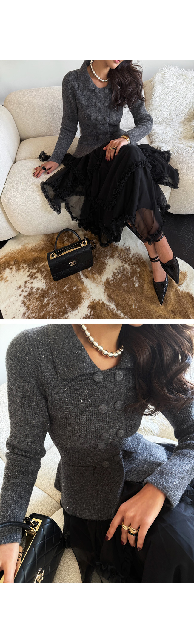 은은하게 반짝이는 펄사가 더해진 니트 소재로