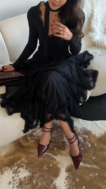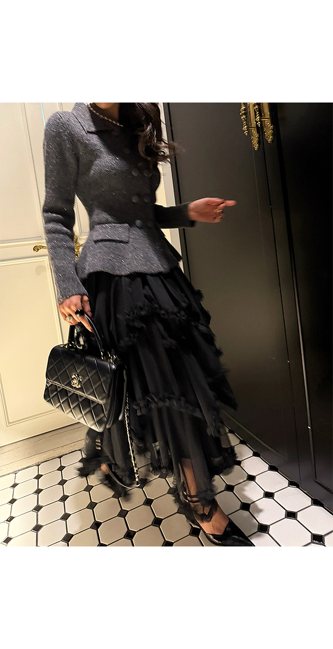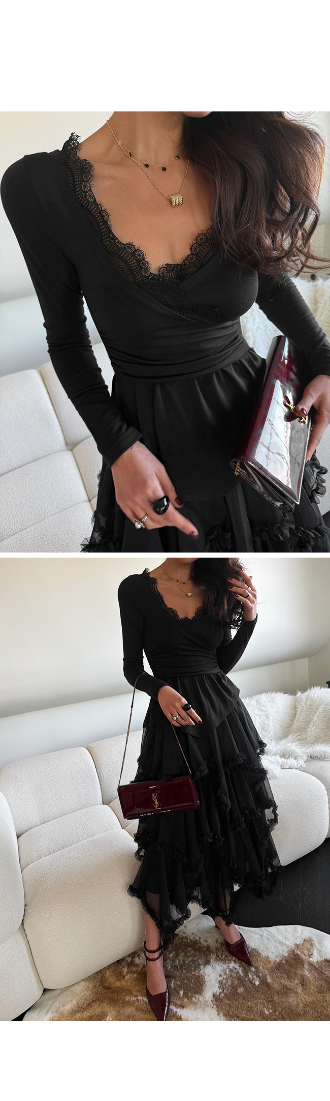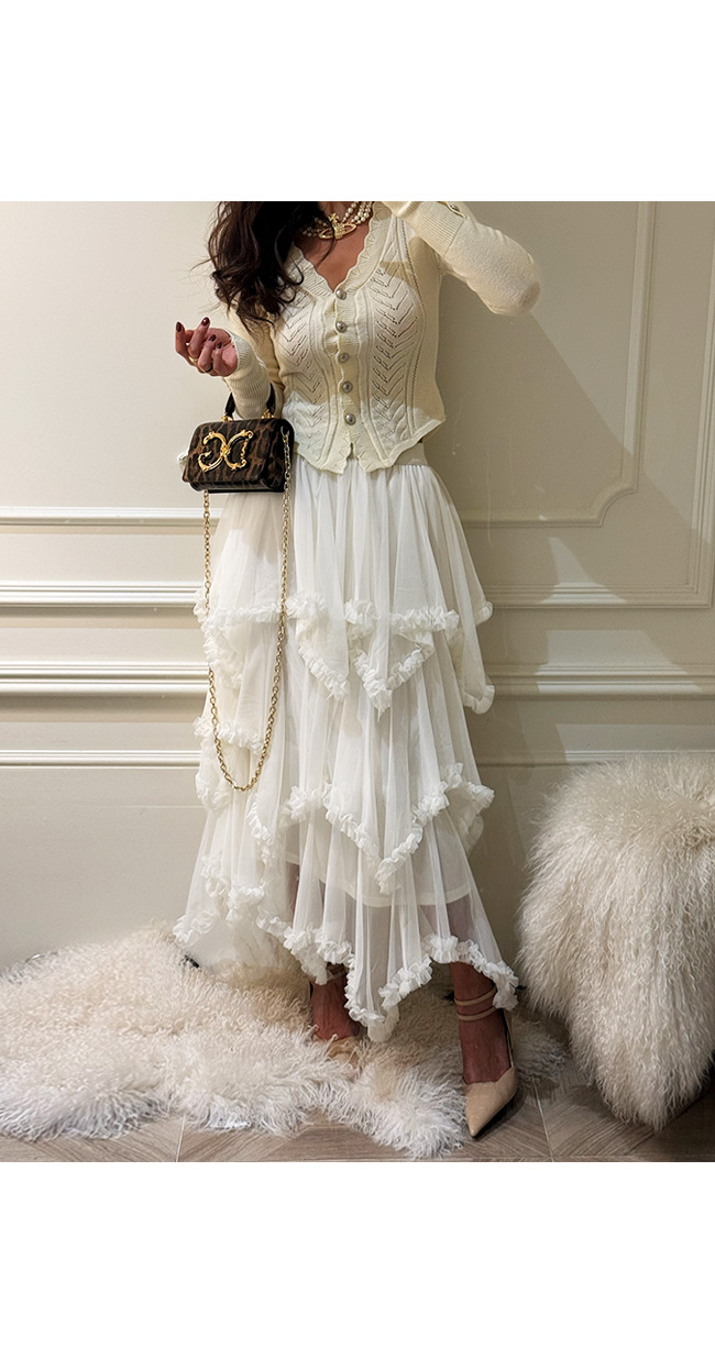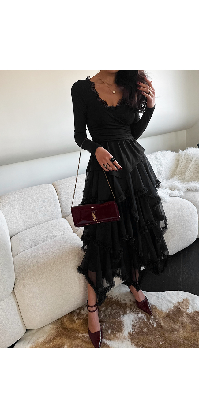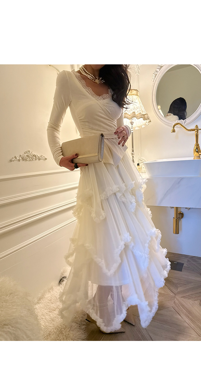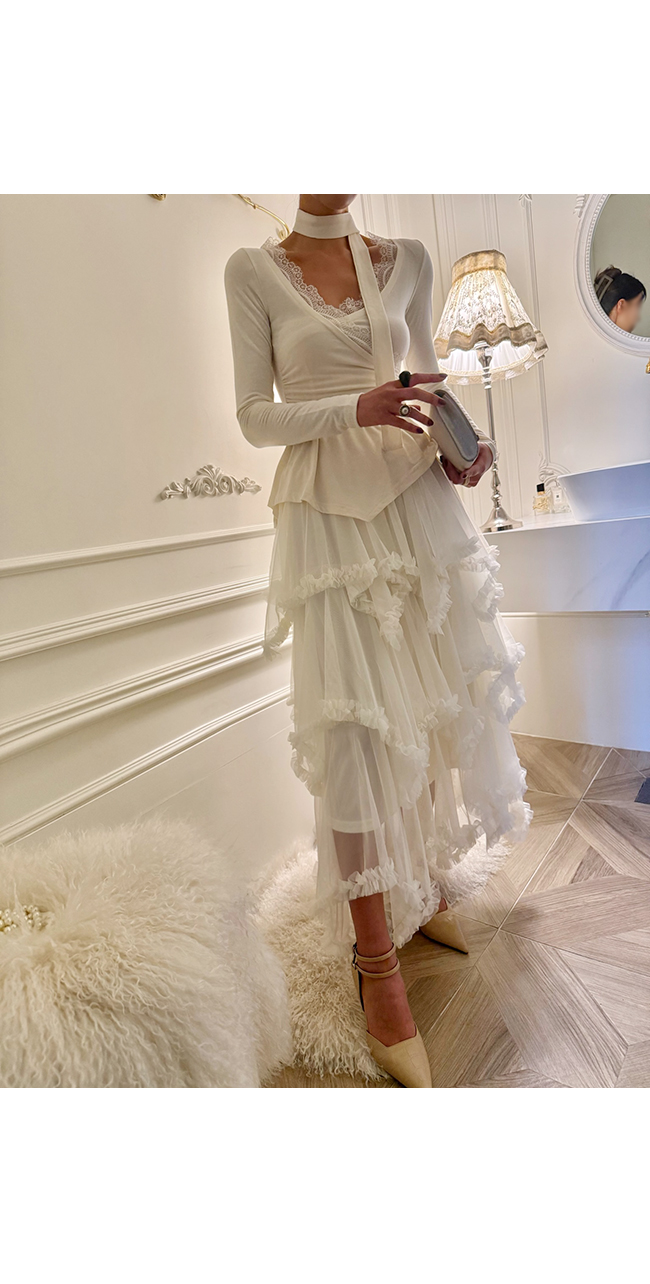 시스루한 레이스 원단이 겹겹이 레이어드되어