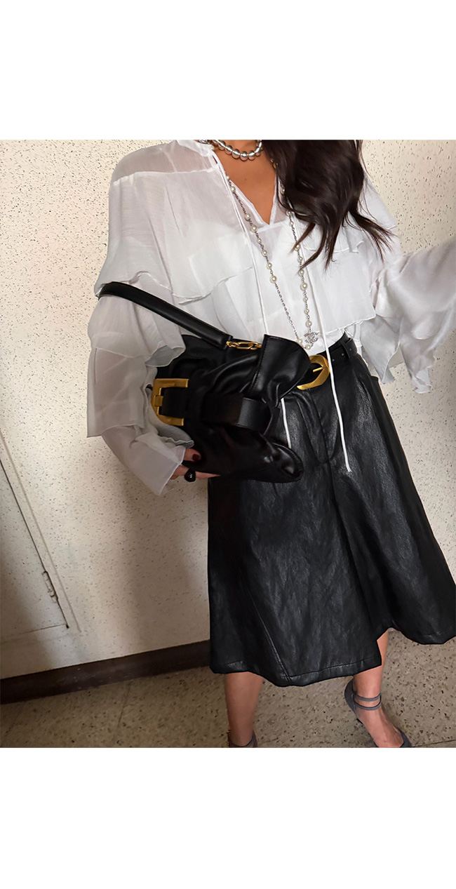 단독으로는 물론 슬랙스, 레더 스커트, 데님 등과