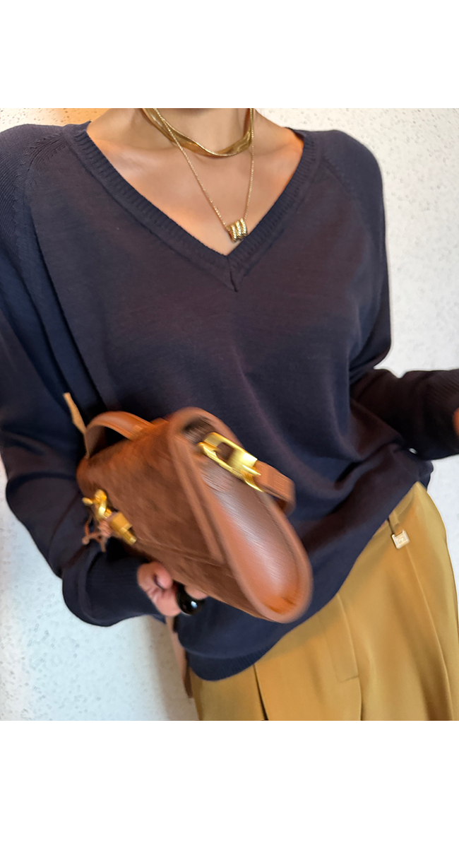 활용도 높게 즐기기 좋은 브이넥 니트입니다.