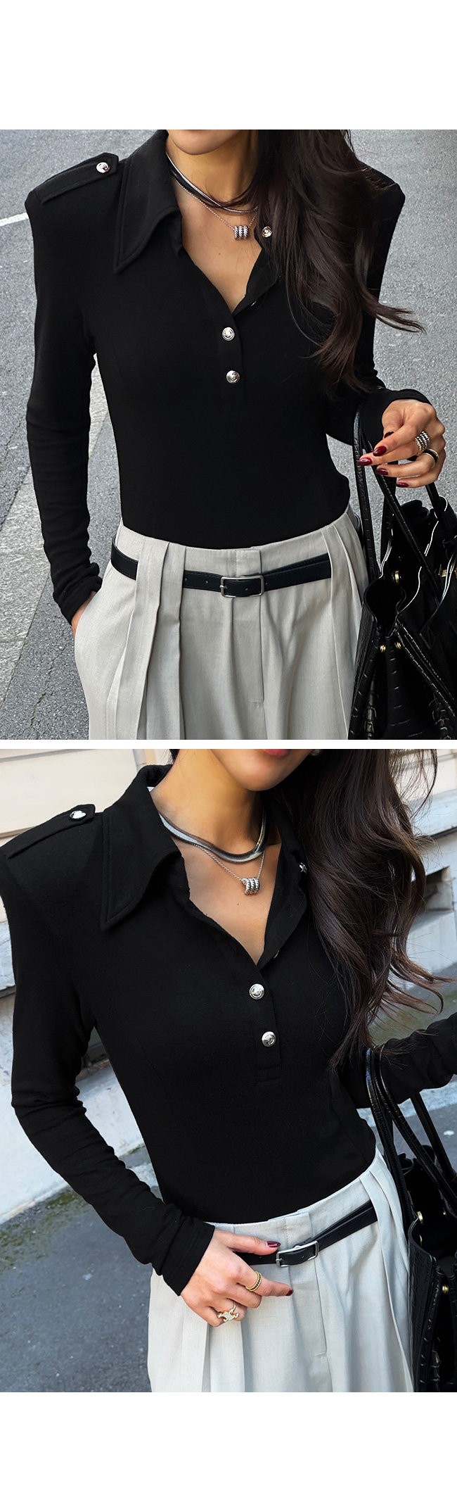 단독으로는 물론 자켓이나 코트 안 이너로 매치해도