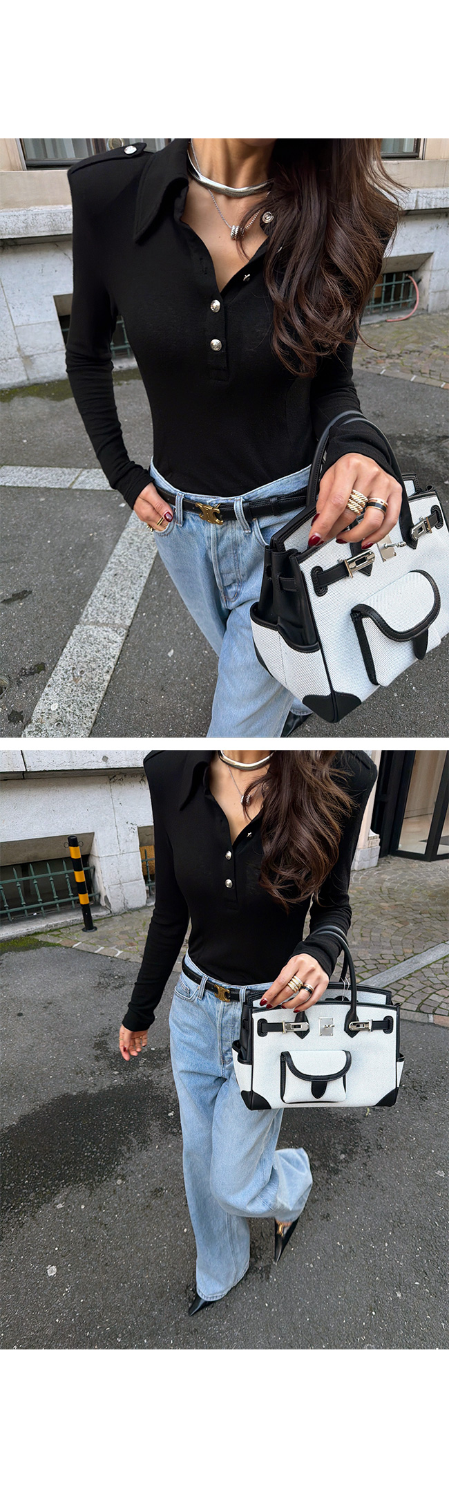 고급스러운 텍스처와 세련된 실루엣이 돋보이는
