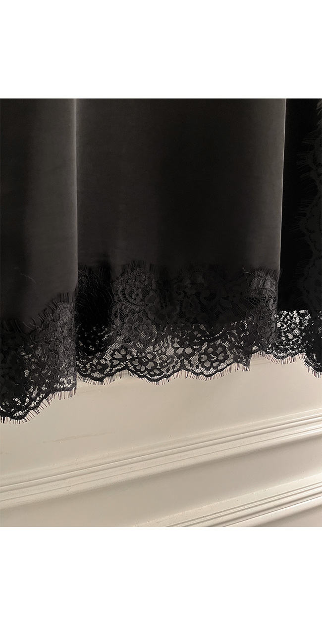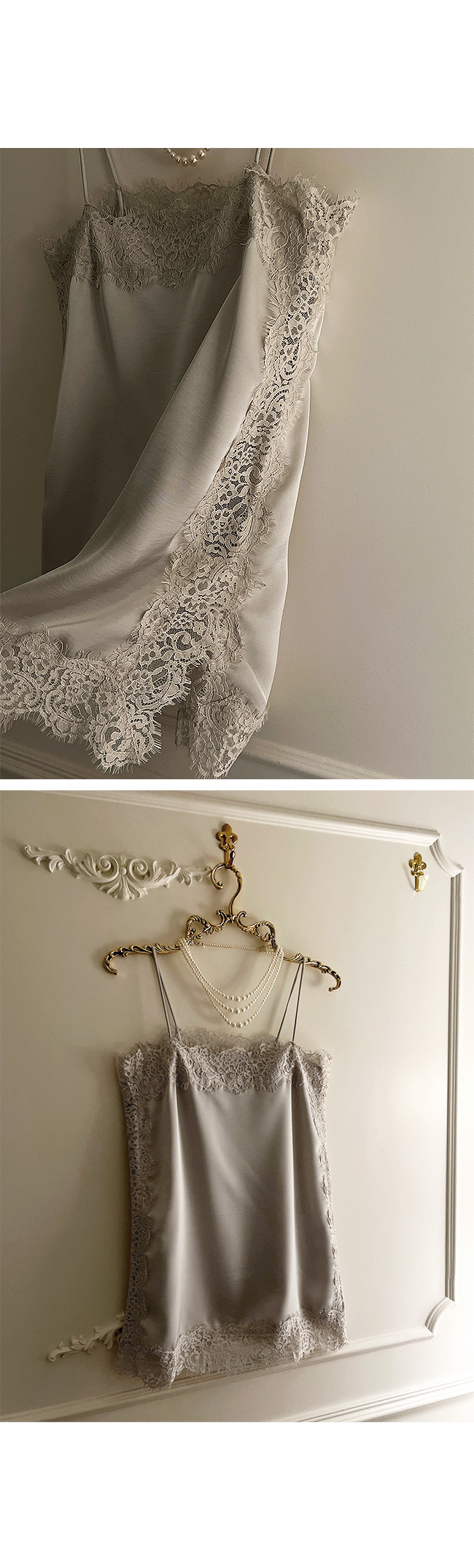 넥 라인과 밑단에 더해진 레이스 디테일이