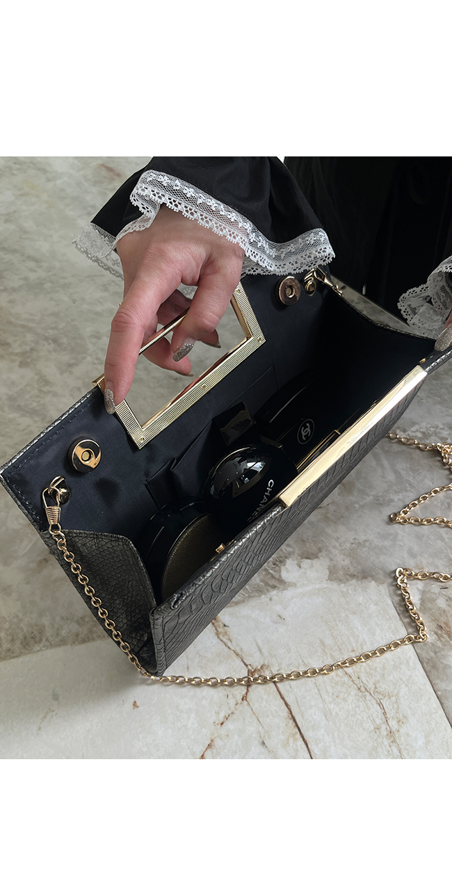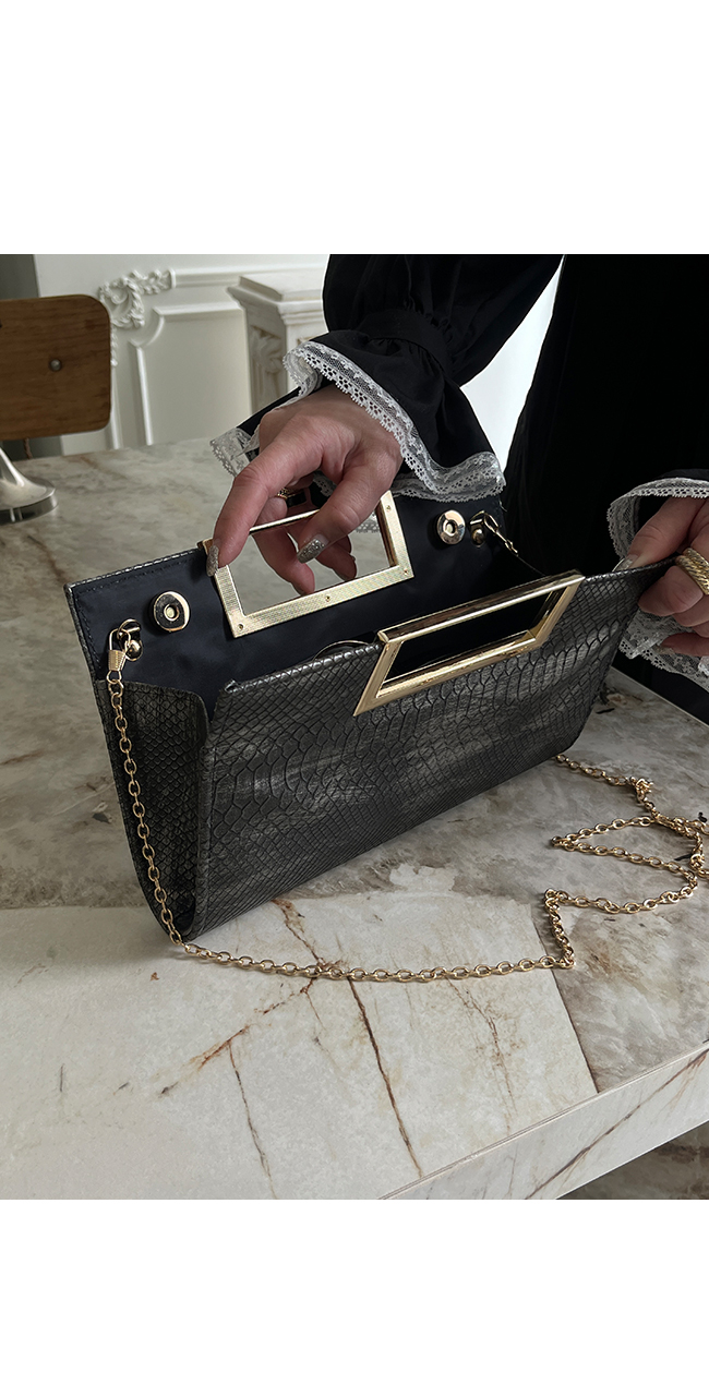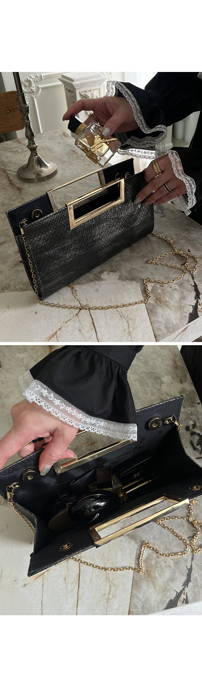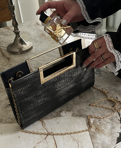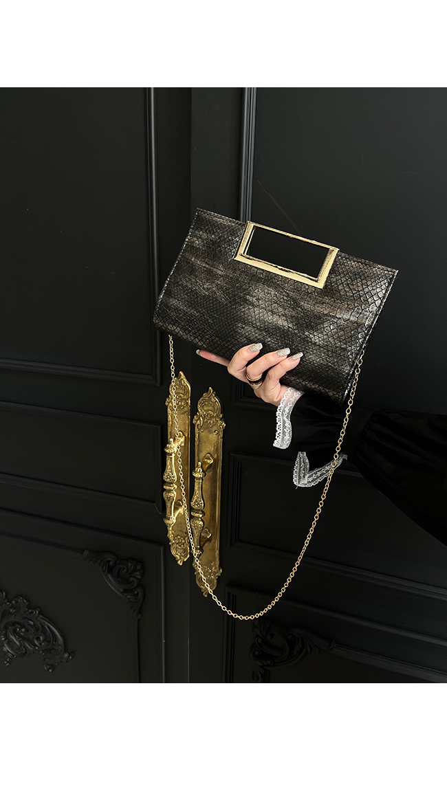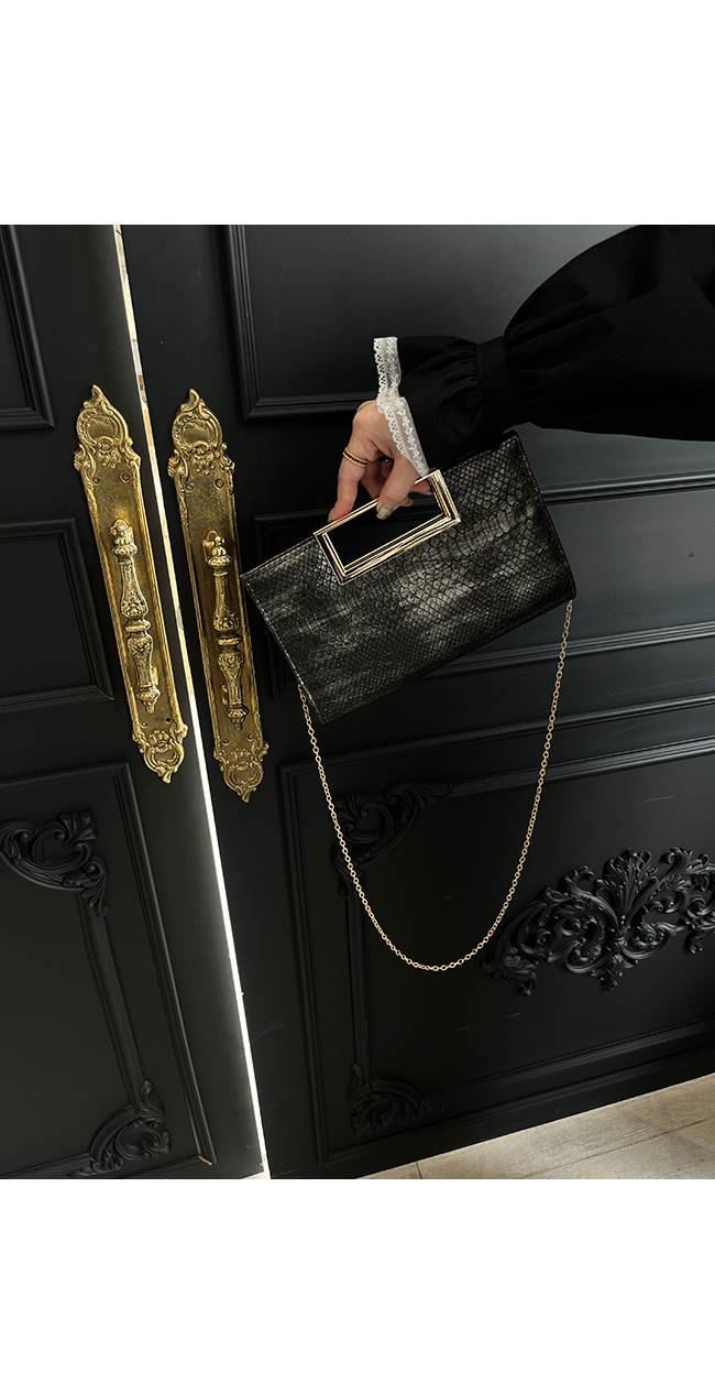 - 스네이크 패턴 디테일과 볼드한 골드 프레임 핸들