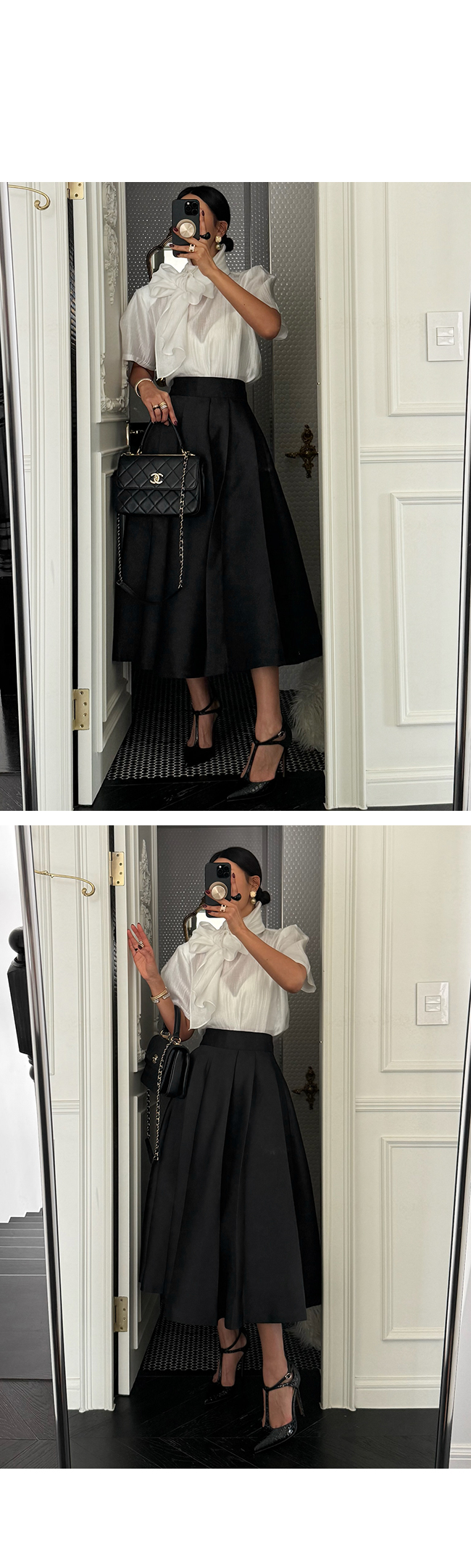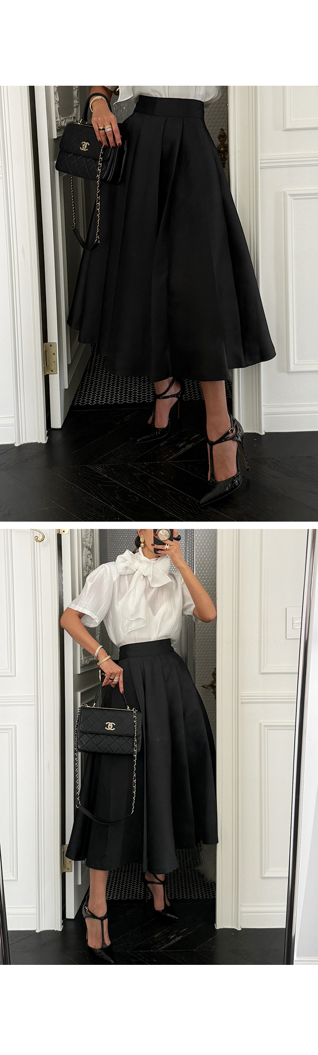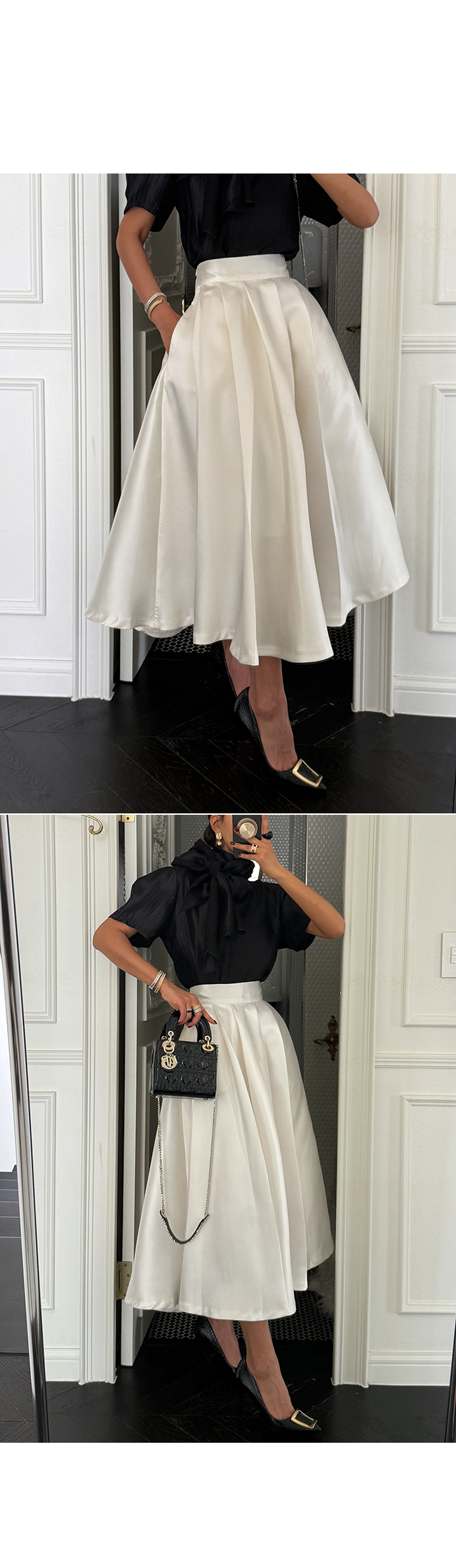 핀턱 디테일이 더해져 허리부터 밑단까지