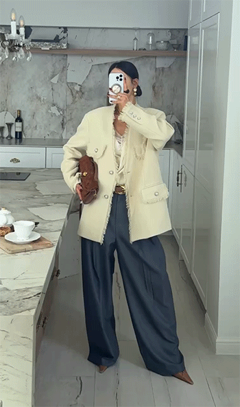 상의를 넣어 입었을 때 더욱 세련된 비율을