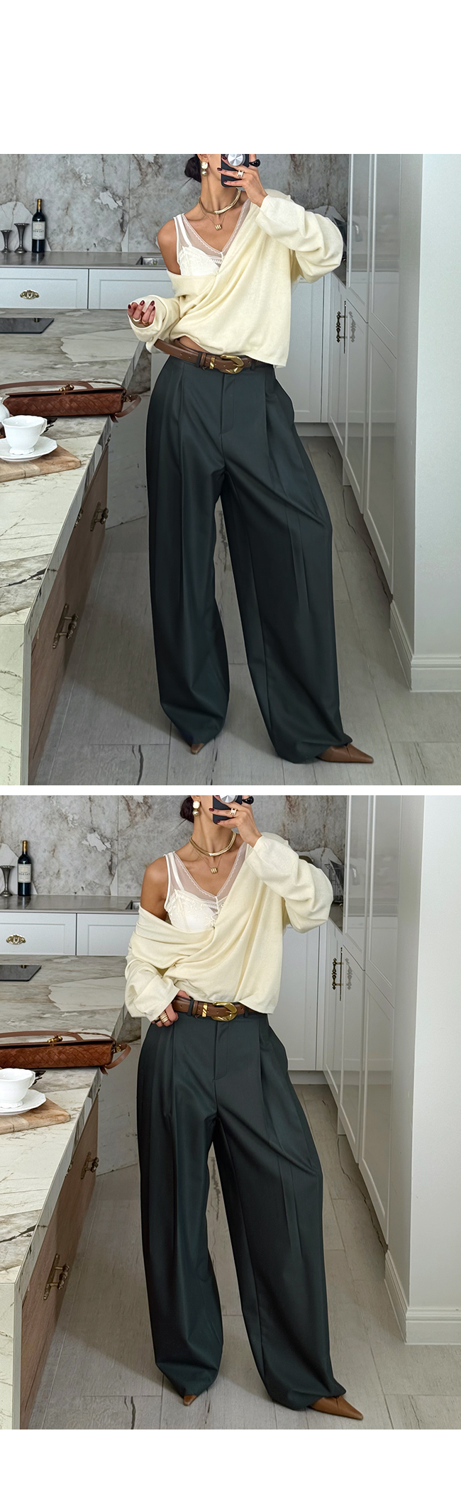 완성해주고 벨트와 함께 스타일링하면
