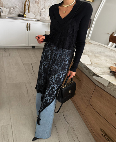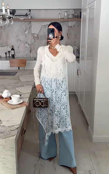 섬세한 레이스 텍스처로 로맨틱한 분위기를 완성해주는
