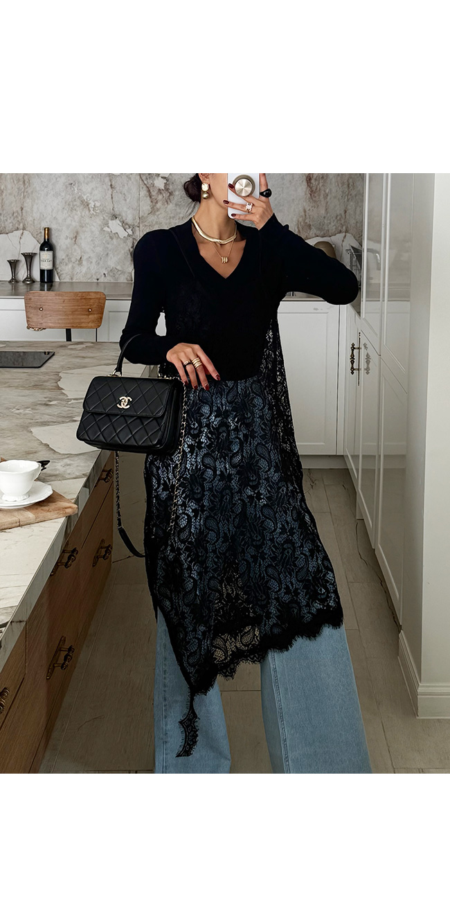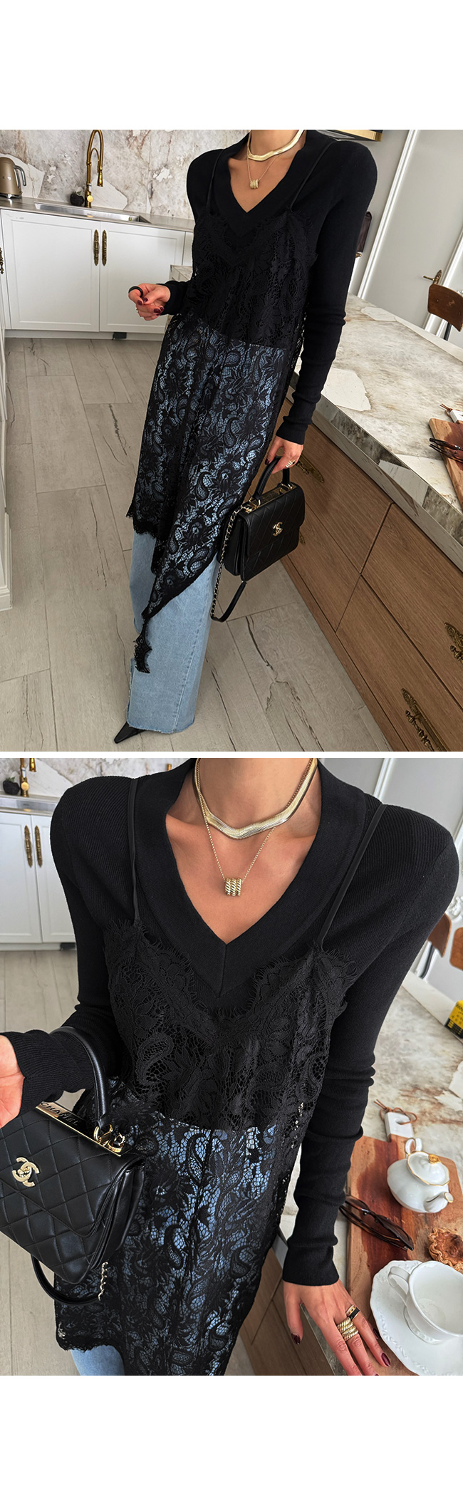 밑단은 언발란스한 레이스 컷팅 디테일로