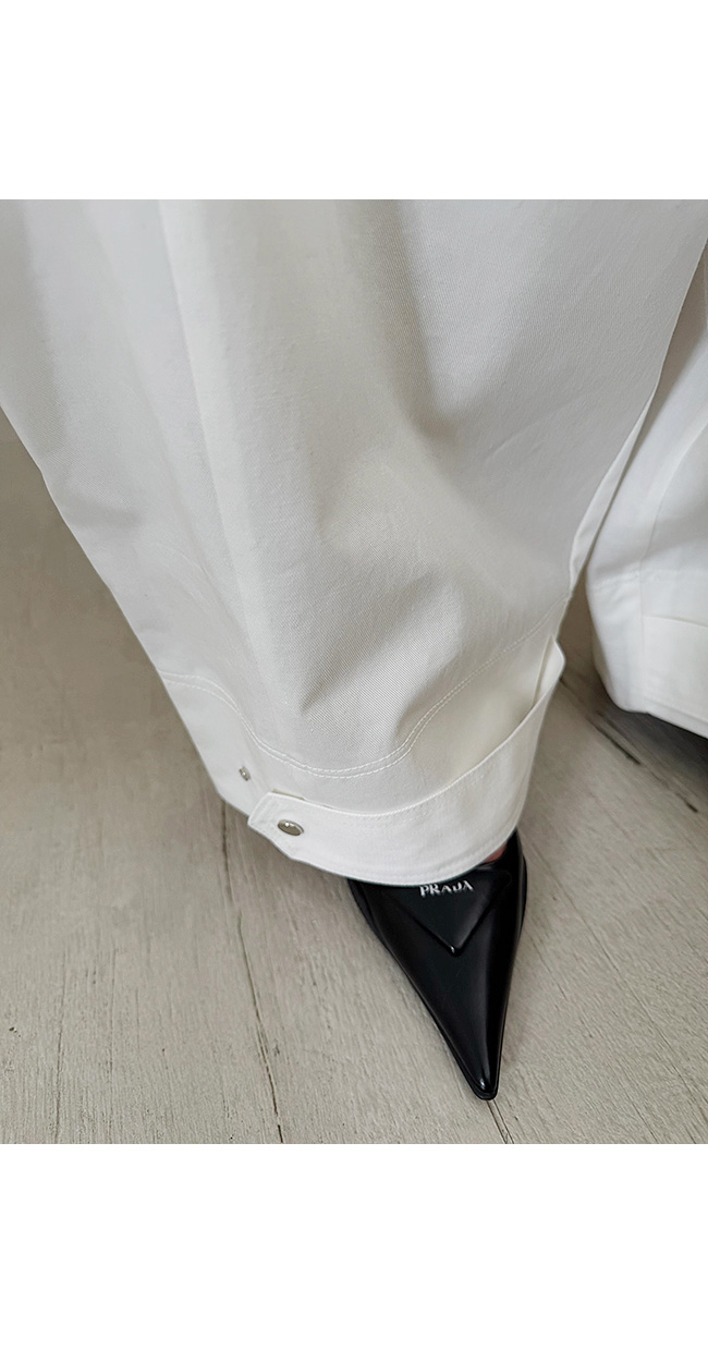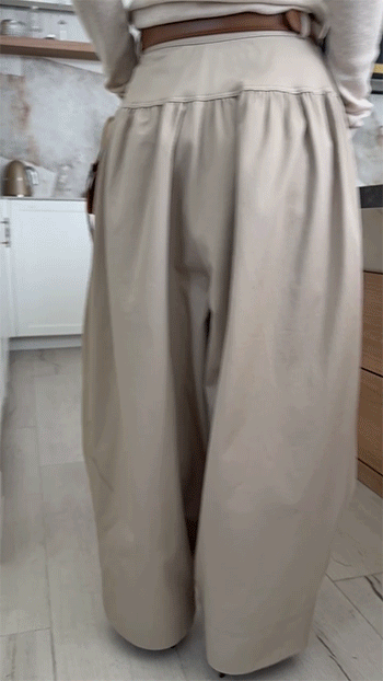허리 라인에 더해진 핀턱과 셔링 디테일이 자연스럽게 잡혀