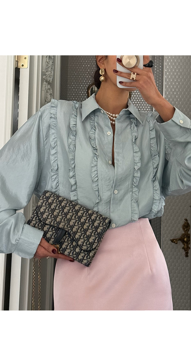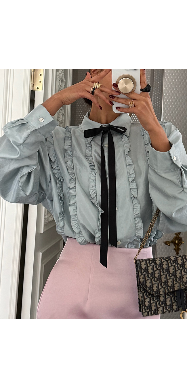 도메즈 리본프릴셔츠
