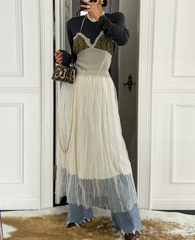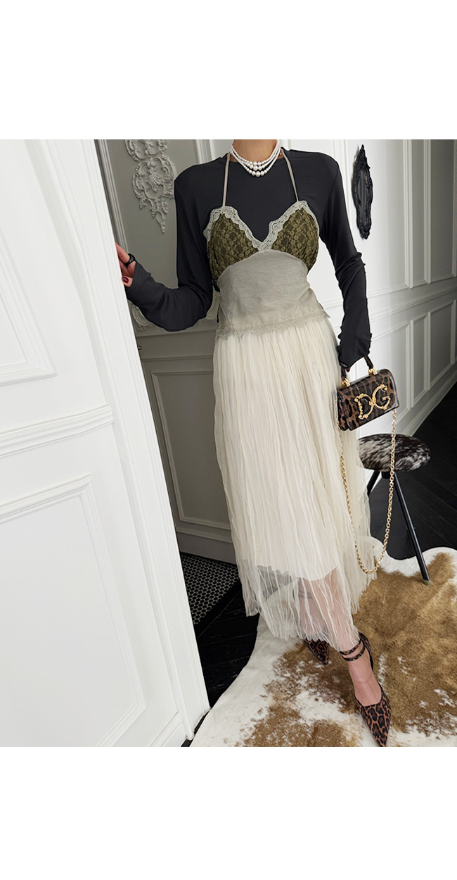 밴딩 레이스 롱 스커트 소개해드릴게요.