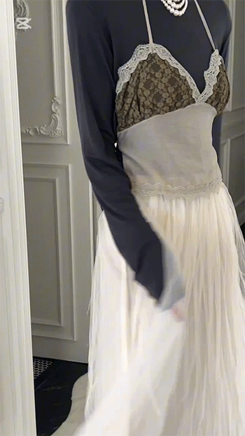 가볍고 은은하게 비치는 레이스 소재가 더해져