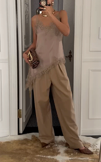길고 슬림한 비율을 연출해주는 팬츠예요.