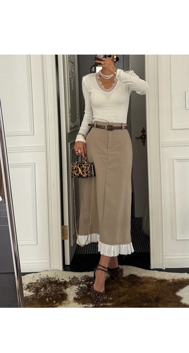 레이스 디테일이 살짝 드러나 세련된 포인트를 더해주어