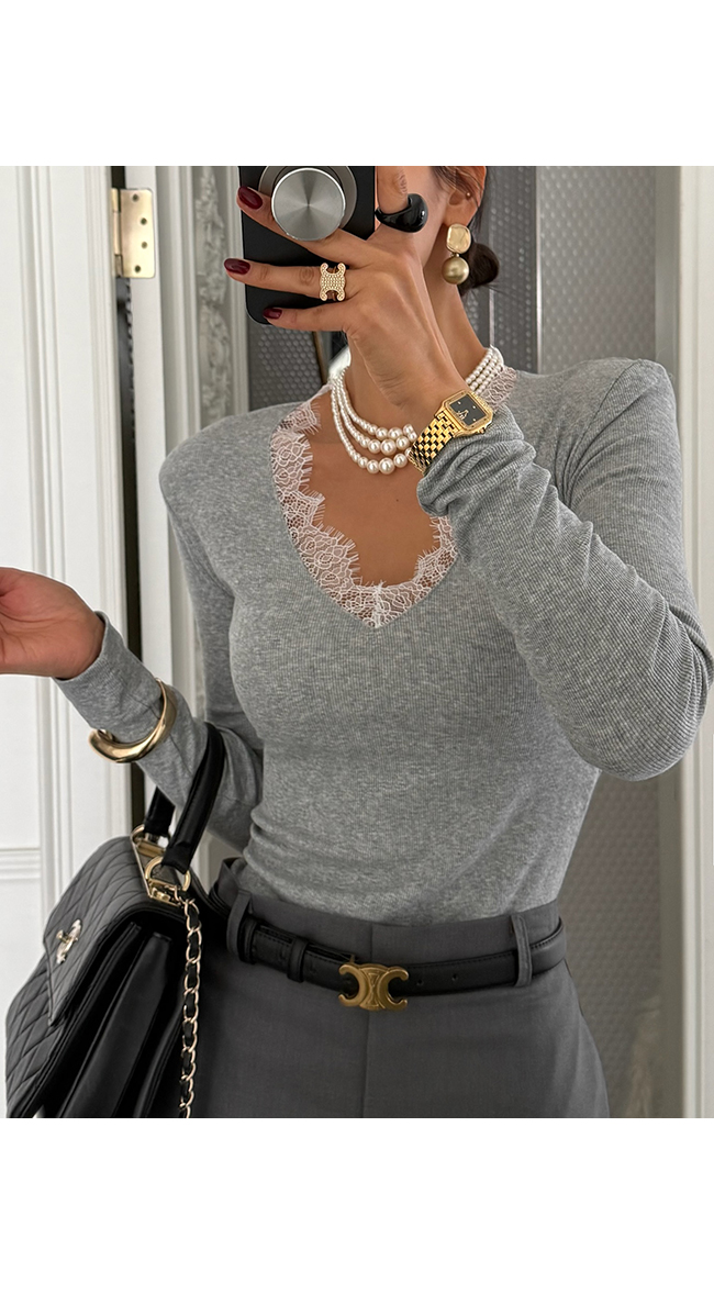 레이스 브이넥 티셔츠 소개해드릴게요.