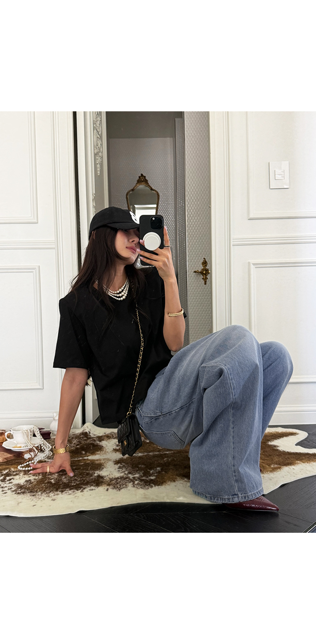 데님 특유의 캐주얼한 무드를 완성해줍니다.