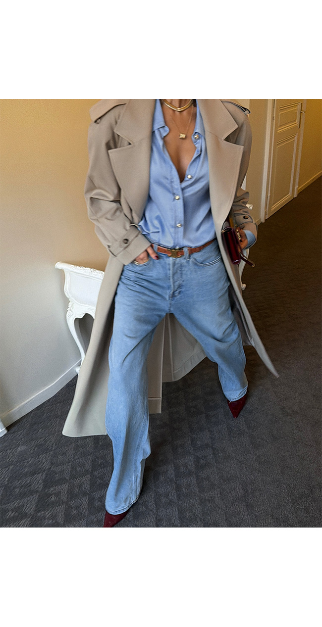 은은하게 워싱된 라이트 블루 컬러의 데님으로