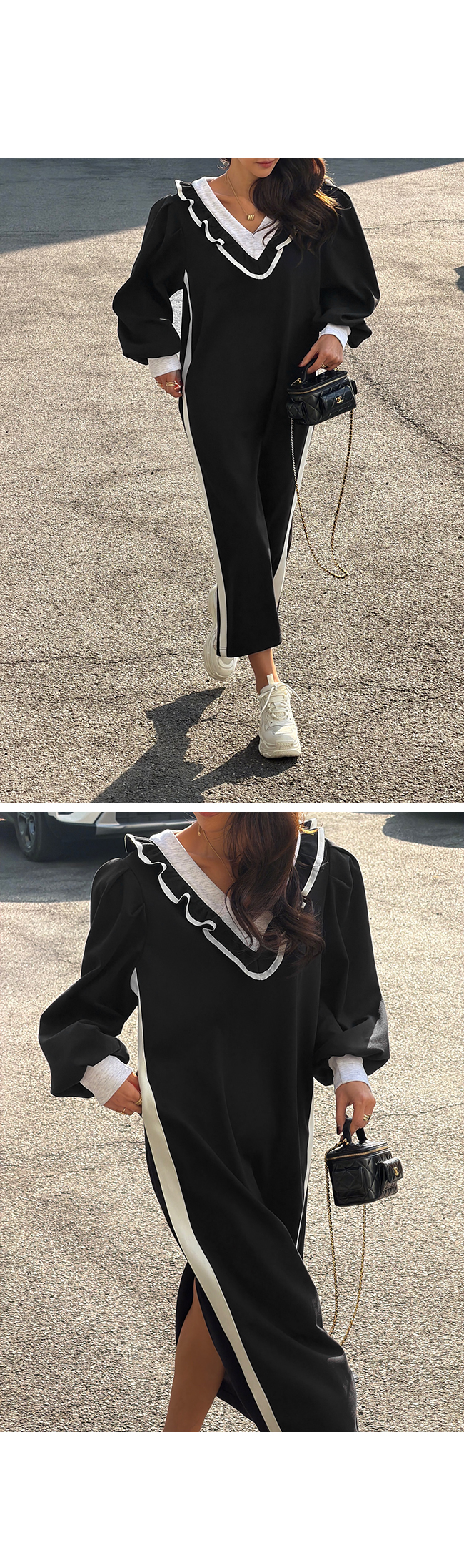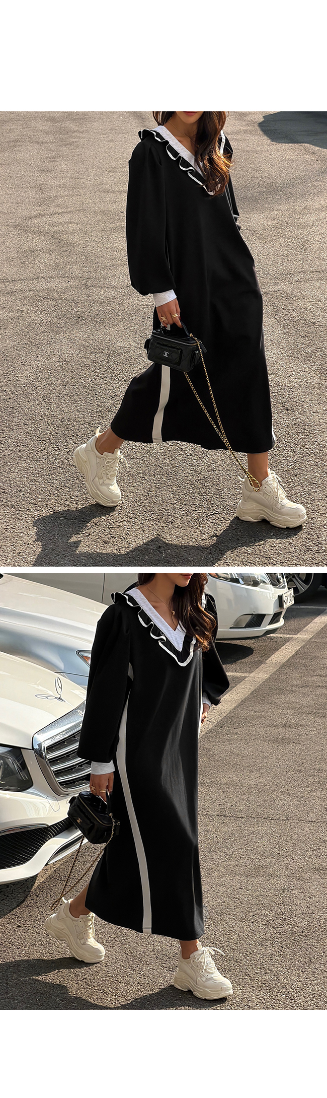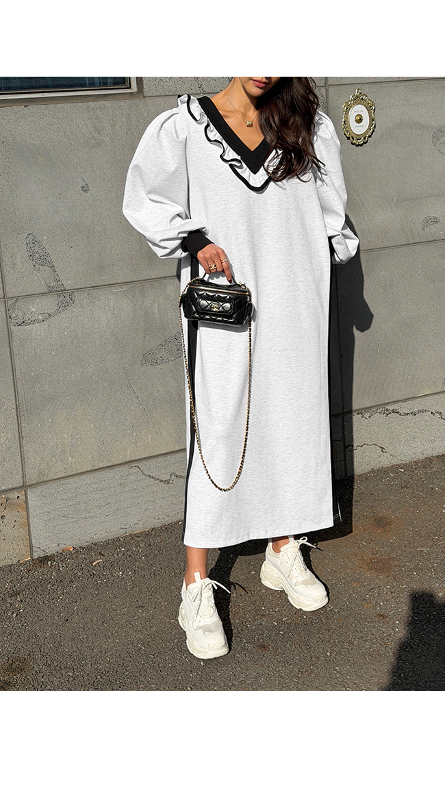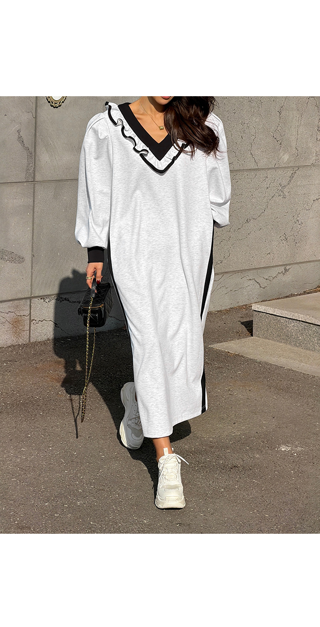 브이넥 프릴 롱 원피스 소개해드릴게요.