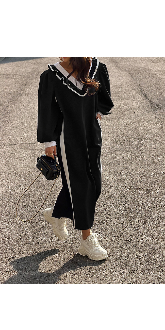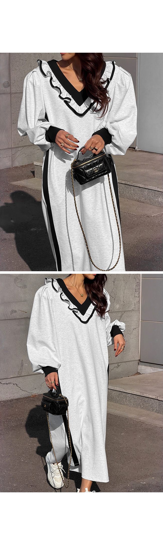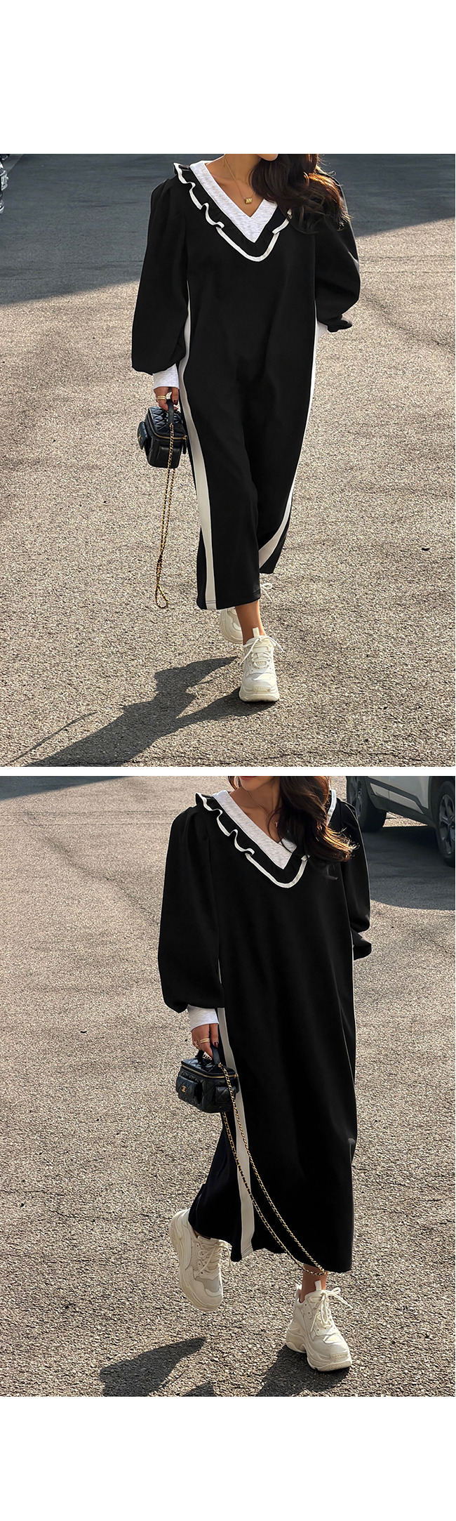 브이넥 프릴 롱 원피스 소개해드릴게요.