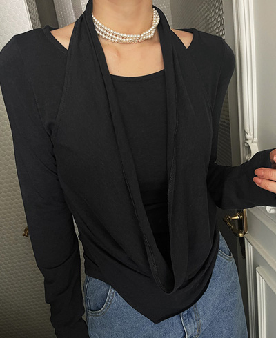 감각적인 레이어드 홀터 티셔츠입니다.