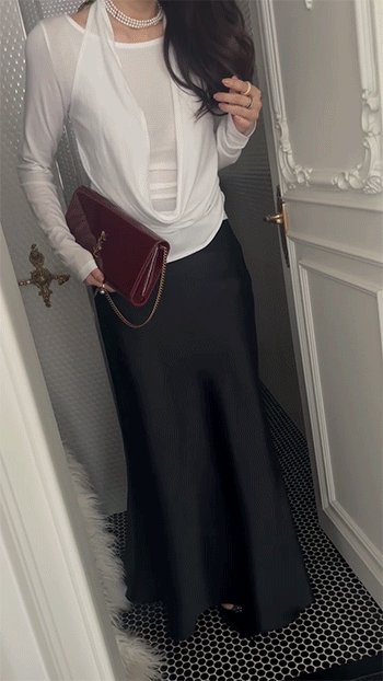 은은하게 흐르는 실루엣이 세련되고 우아한 분위기를 더해줍니다.