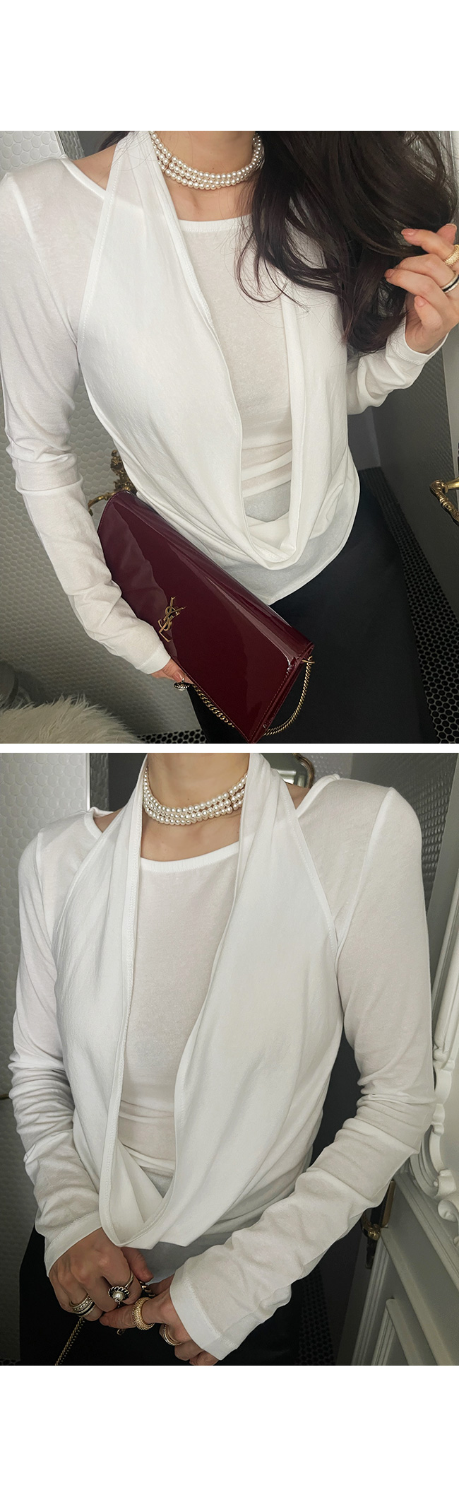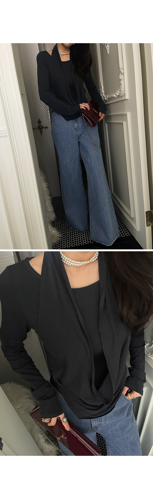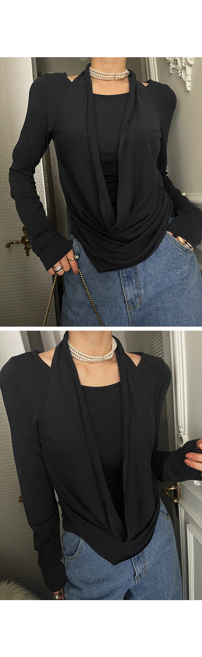 마치 레이어드한 듯한 감각적인 실루엣을 연출해주는 아이템이에요.