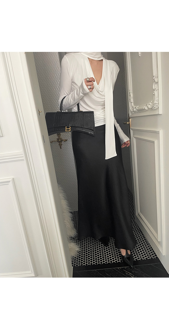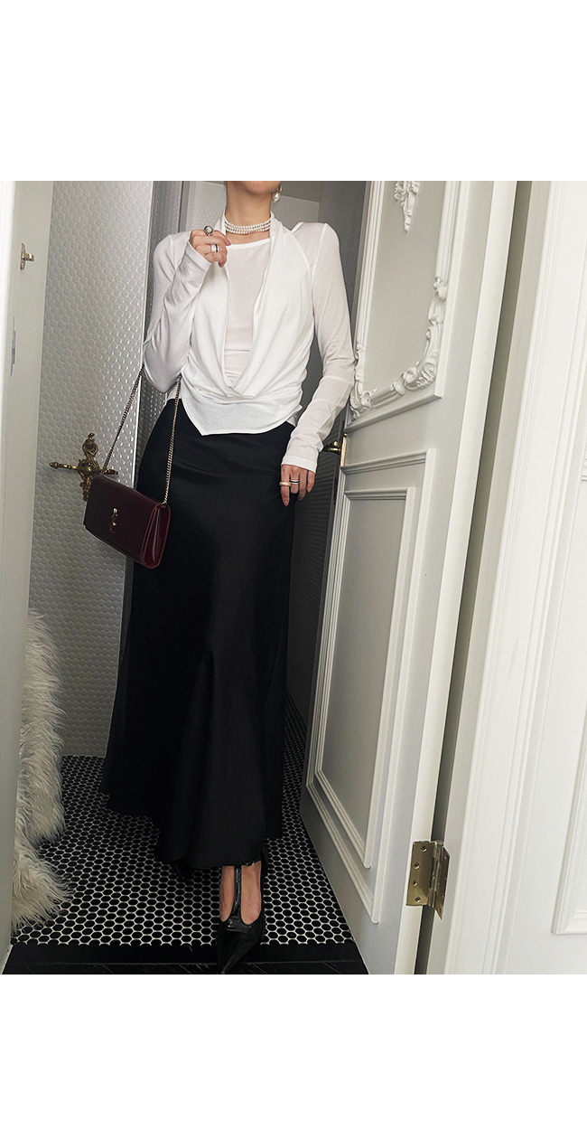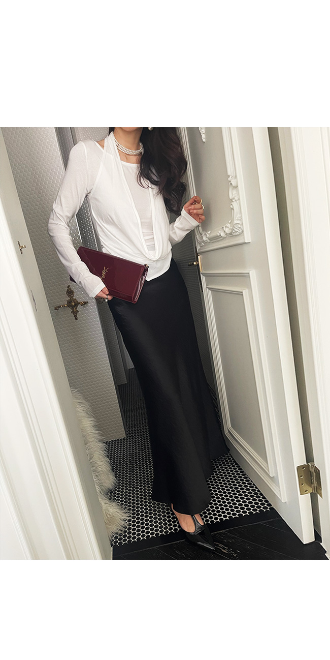 고급스러운 샤틴 롱 스커트로 추천드려요.