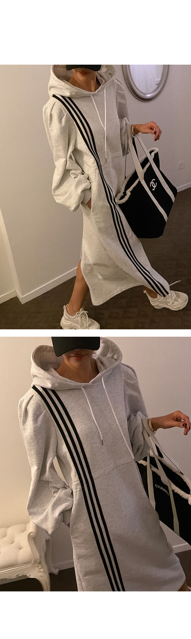 후드 롱 원피스로 추천드립니다.