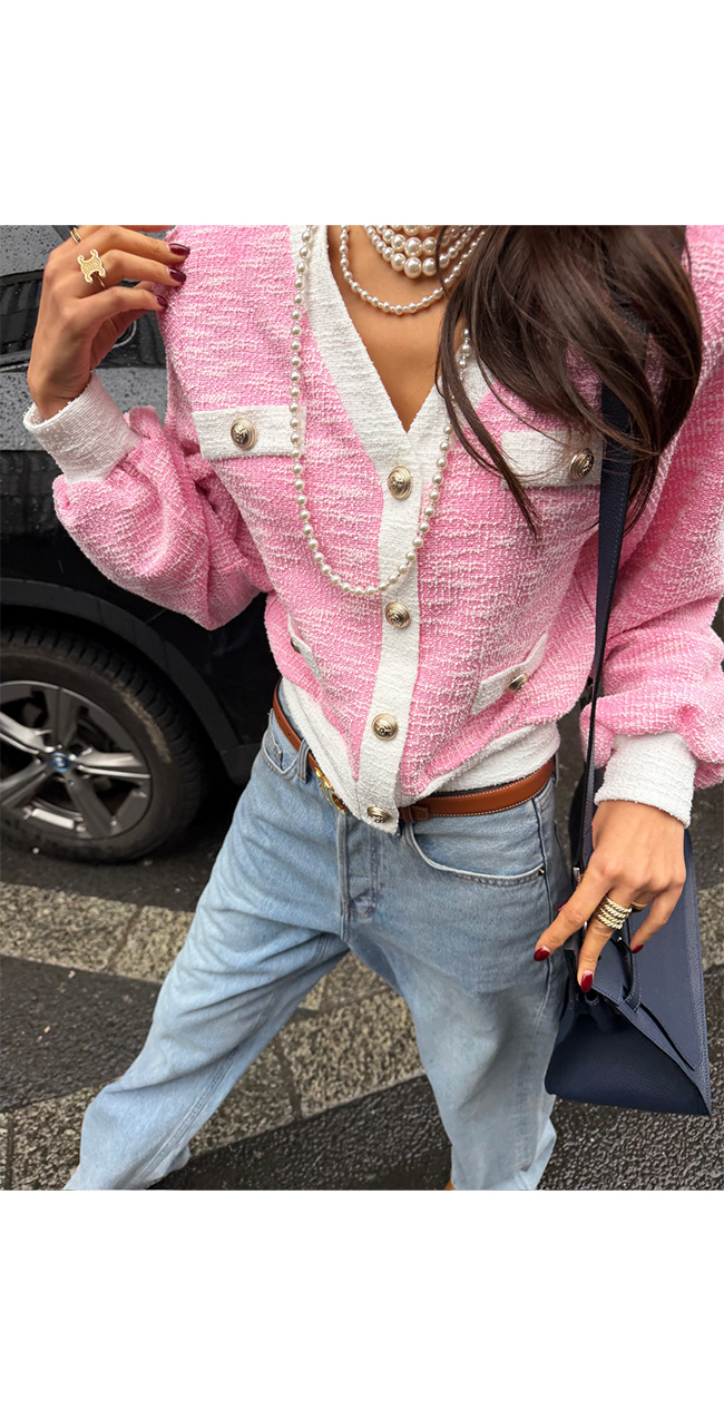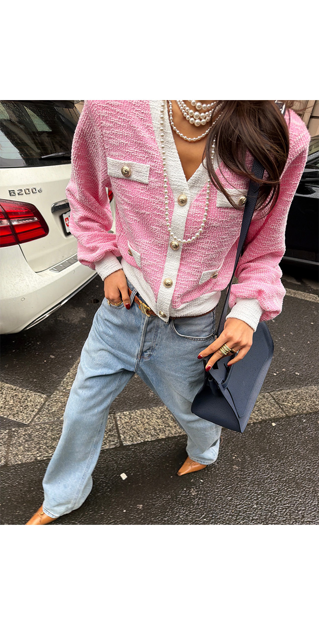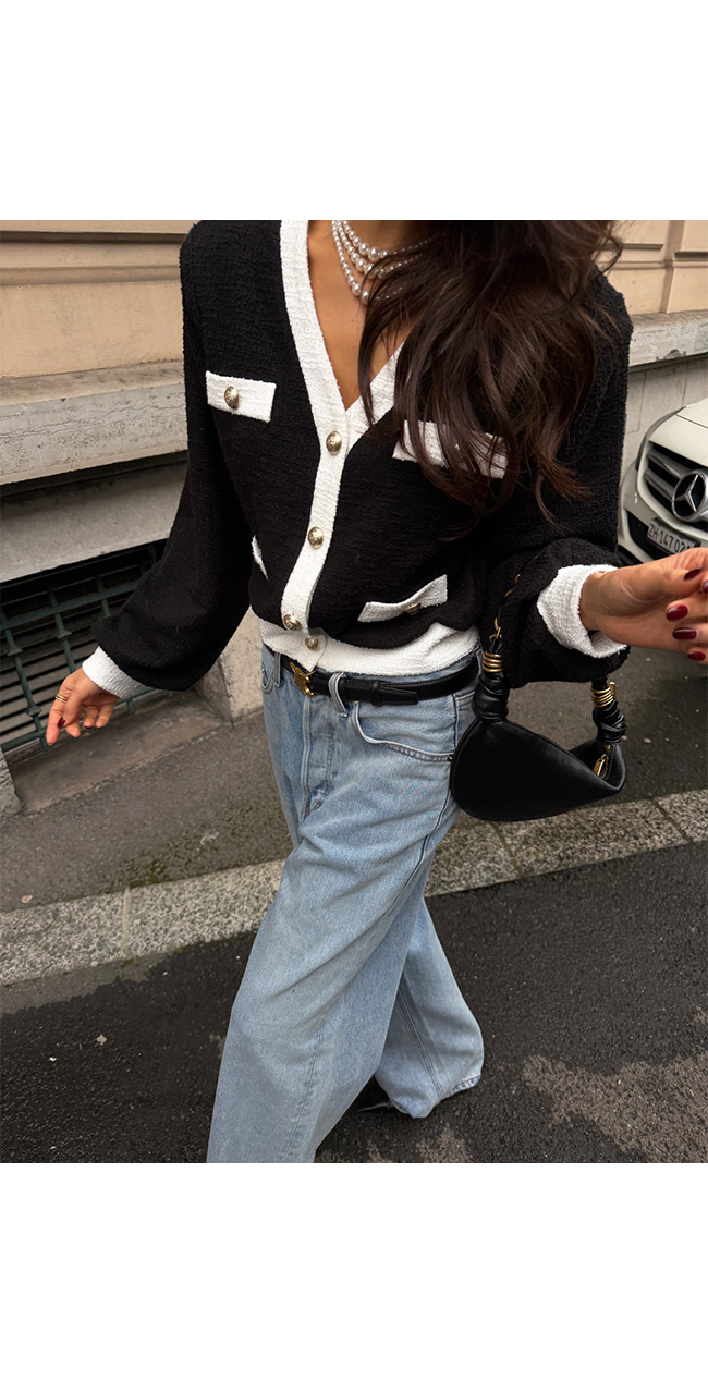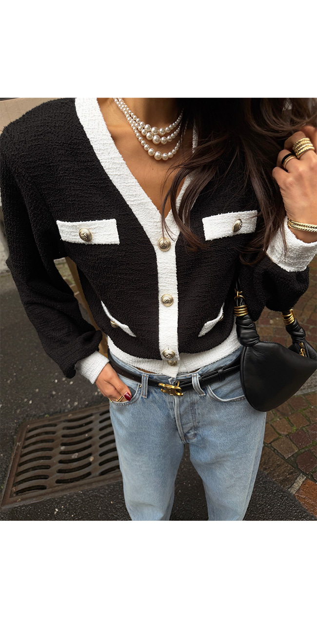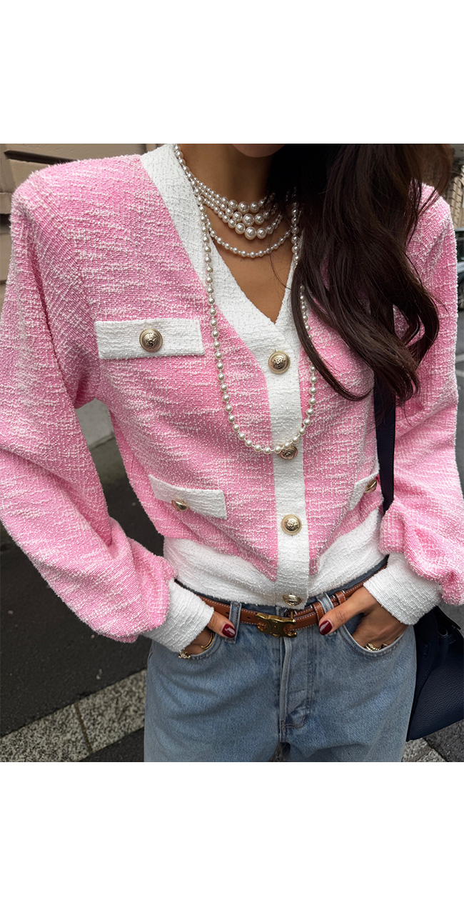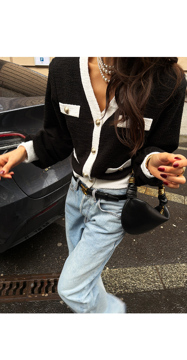 코소벤 배색트위드가디건