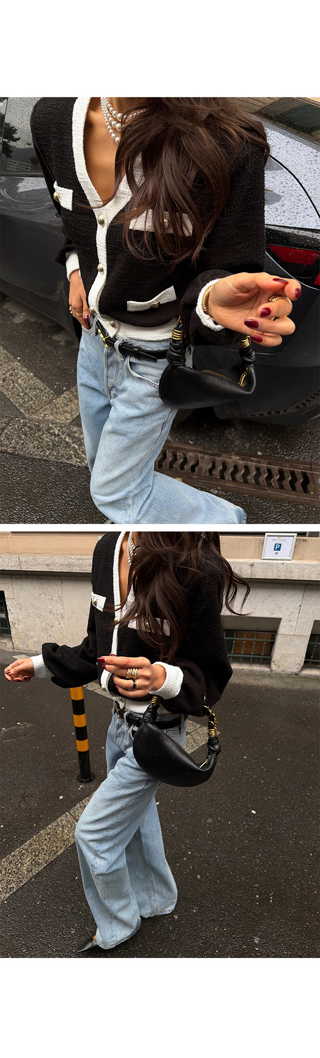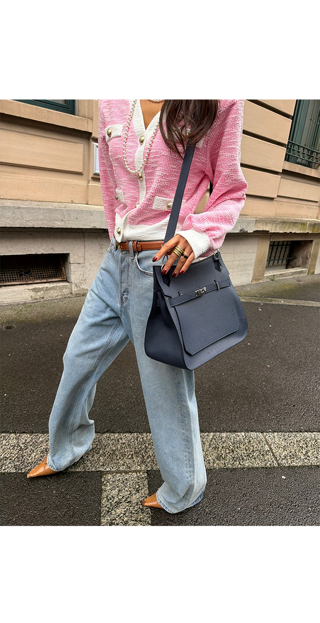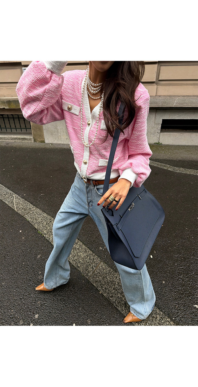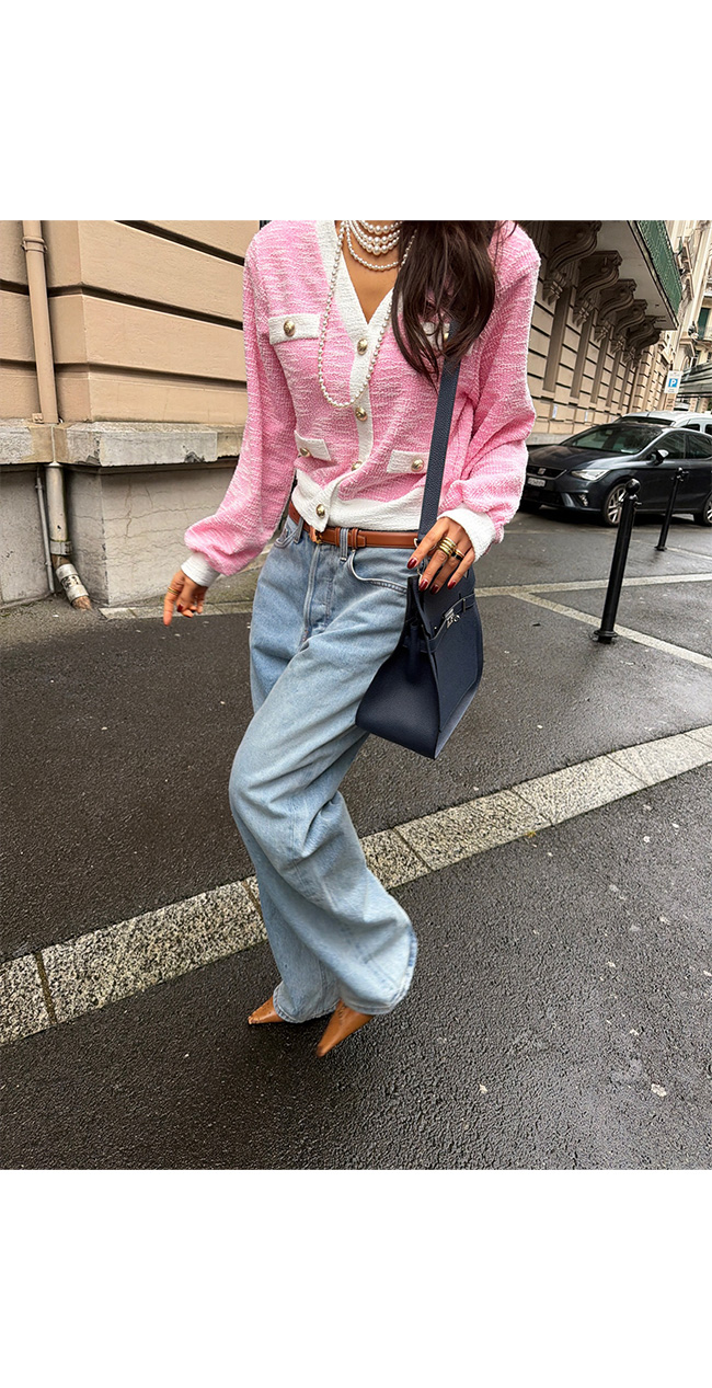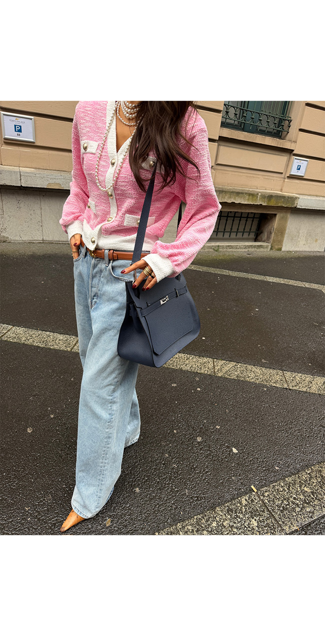 데님과 매치하면 세련된 데일리룩으로,