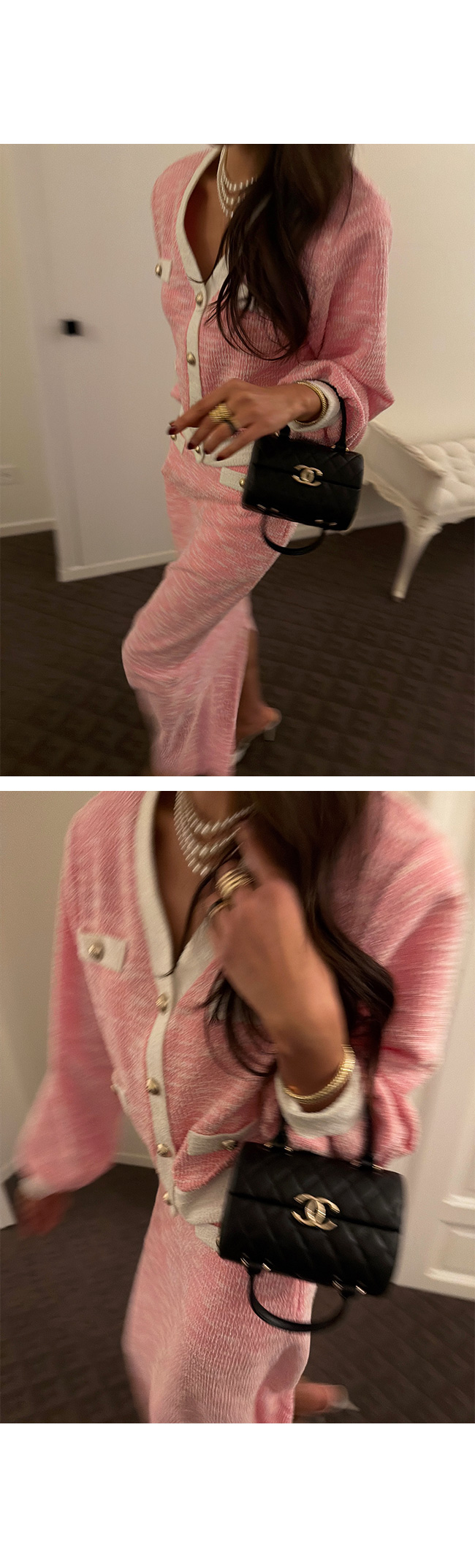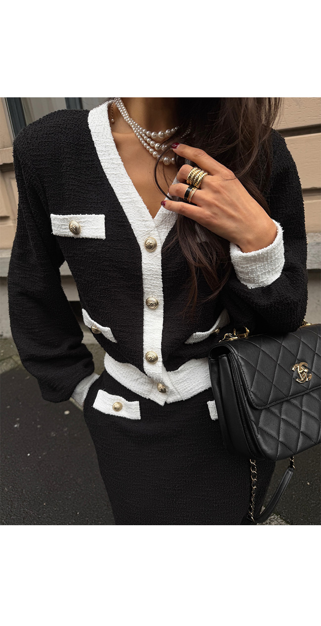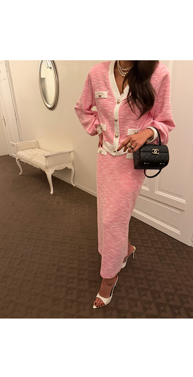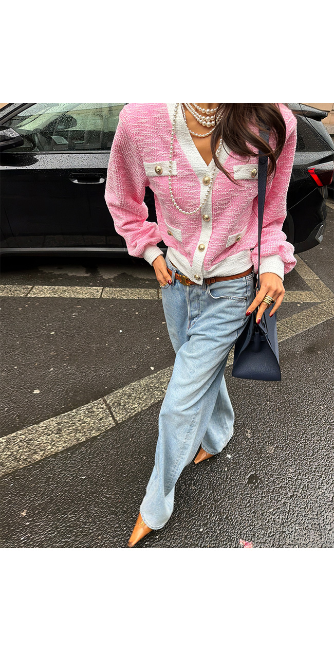 골드 버튼 장식이 더해져 트위드 특유의