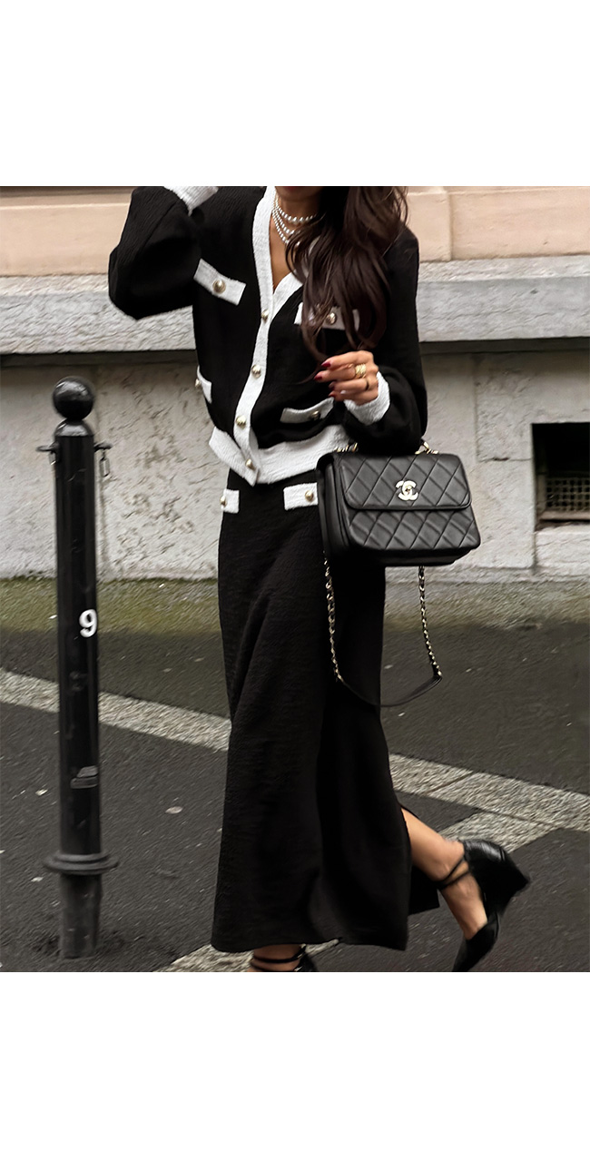 같은 소재의 스커트와 함께 셋업으로 연출하면