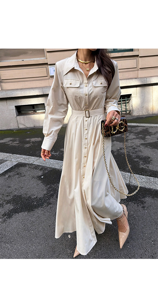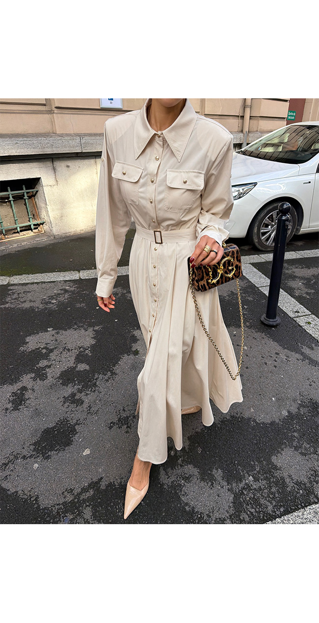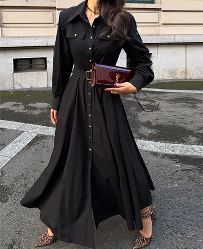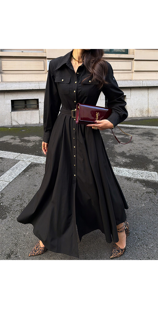 다양하게 활용하기 좋은 셔츠 롱 원피스입니다.