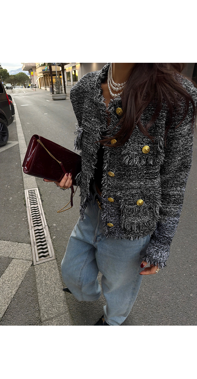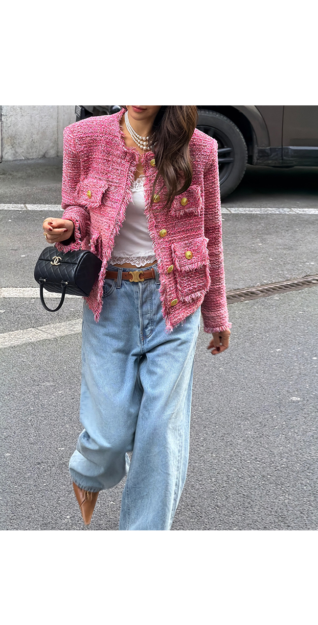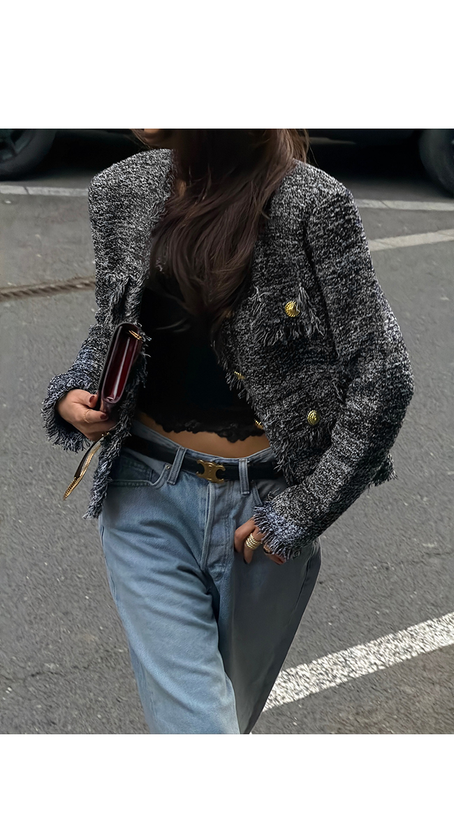 세련된 스타일링을 완성해주는 트위드 자켓입니다.