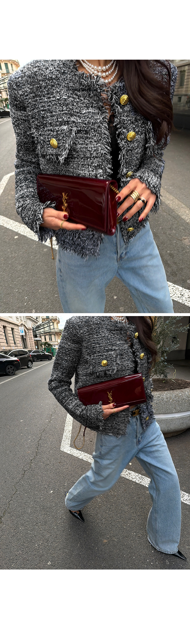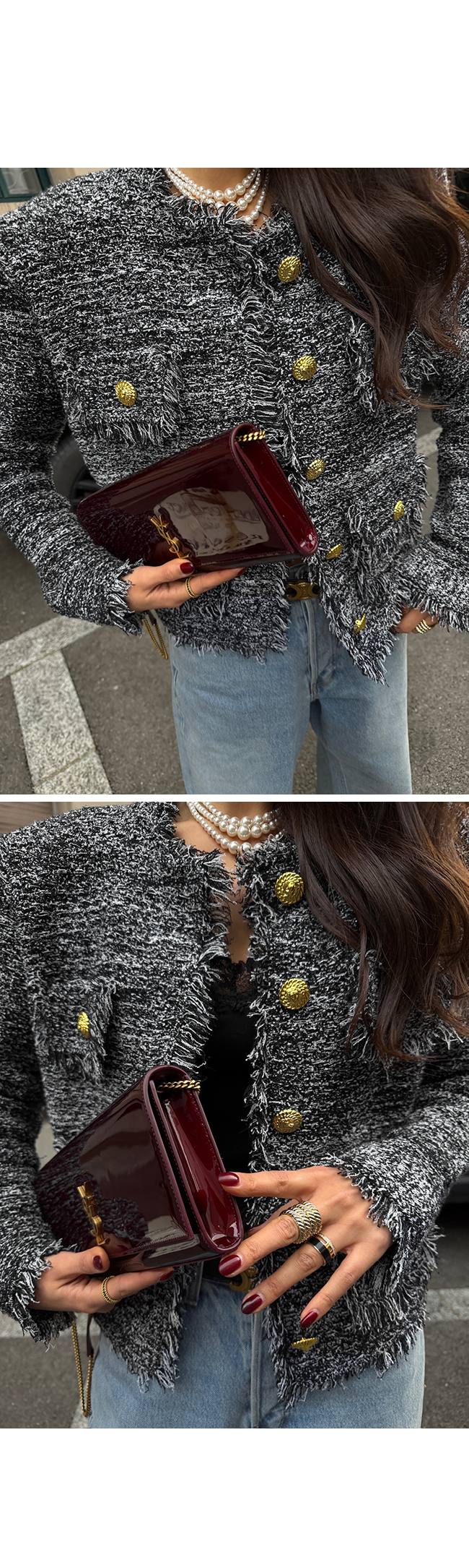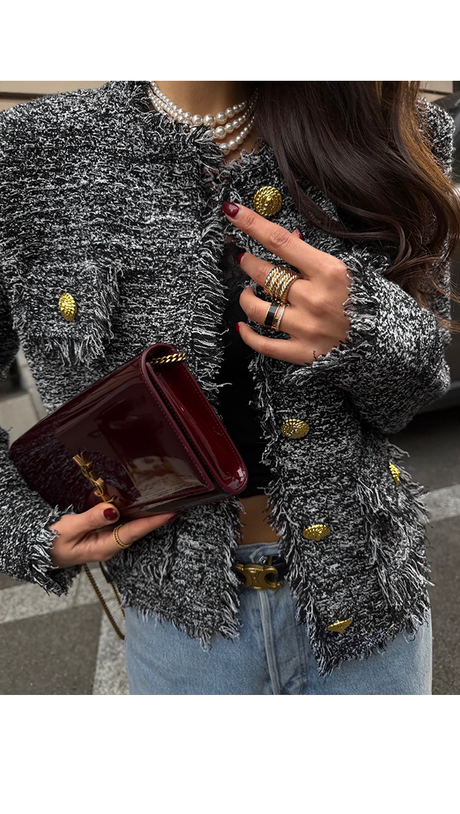 트위드 특유의 고급스러운 무드를 한층 더 강조해주며,