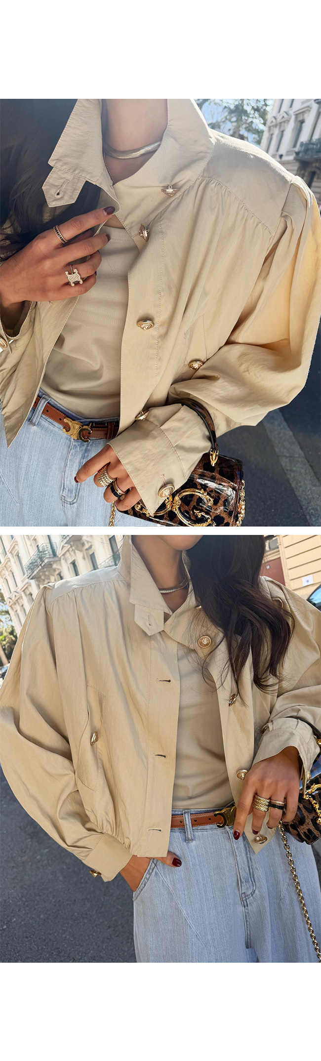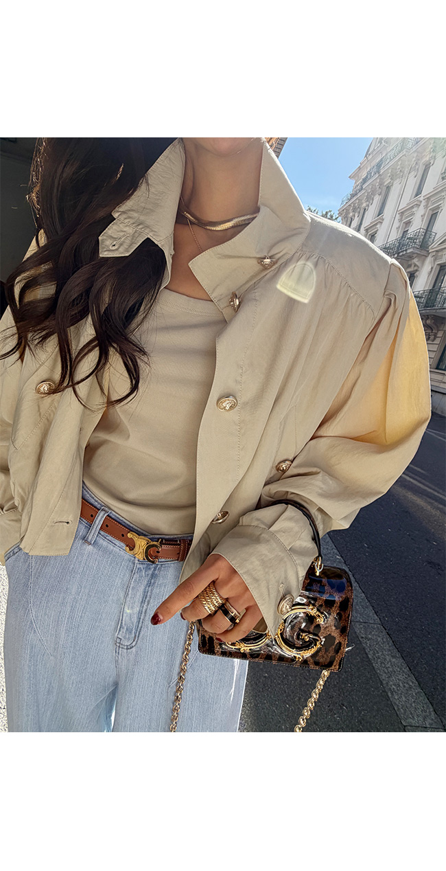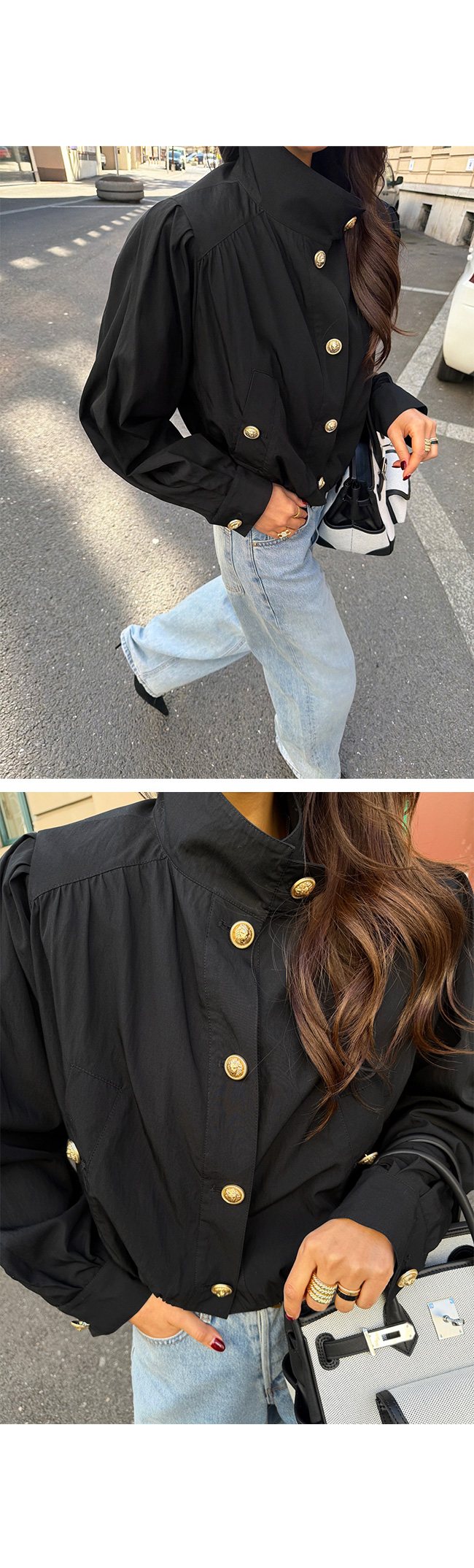 고급스러운 골드 버튼 디테일을 더해