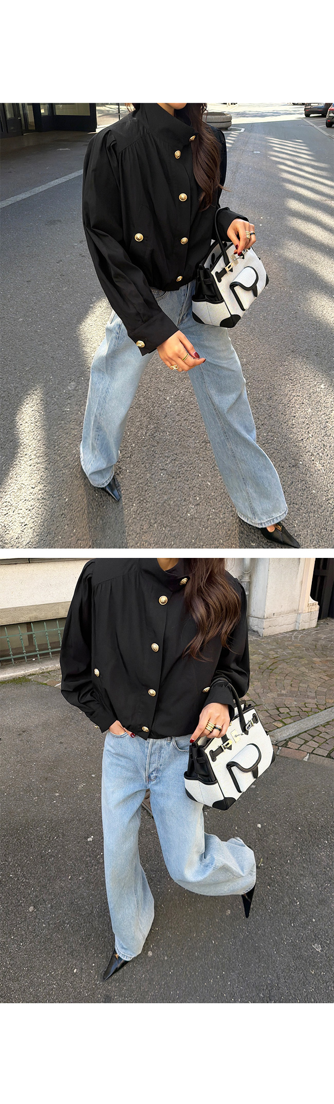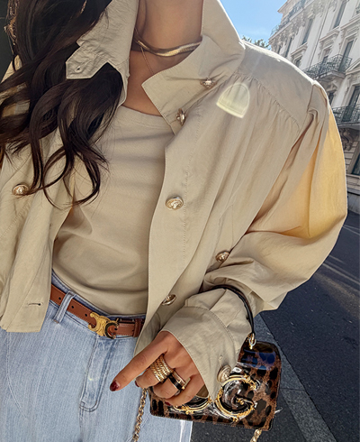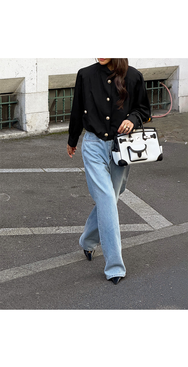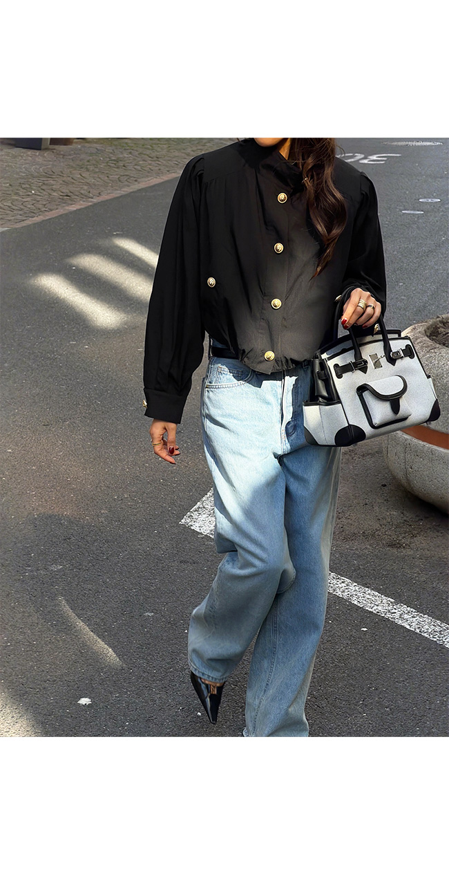 고급스러운 골드 버튼 디테일을 더해