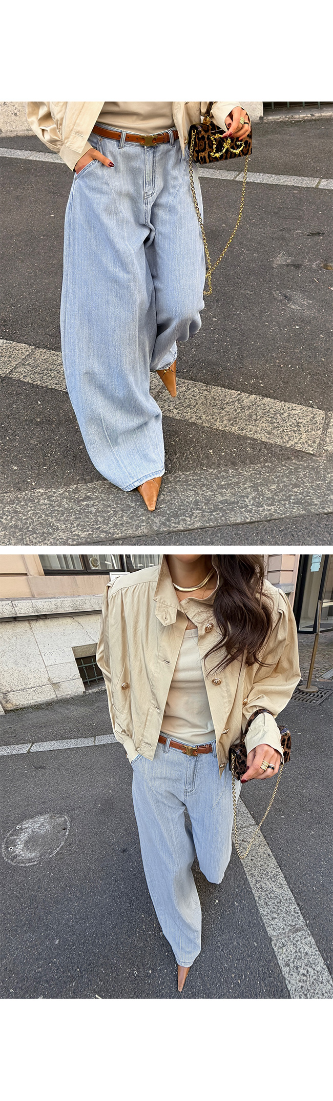 와이드한 실루엣을 더욱 세련되게 완성해줍니다.