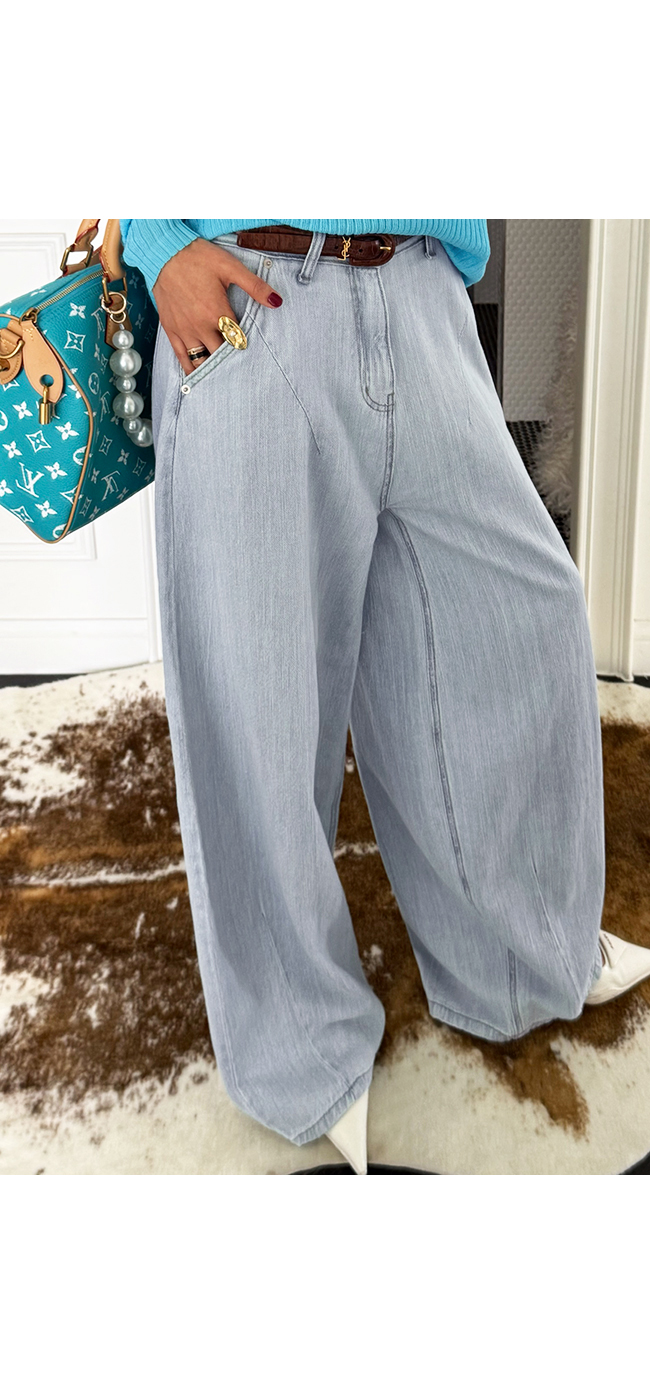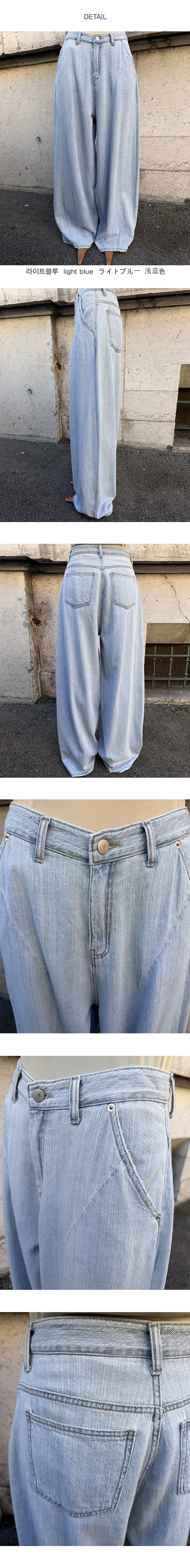 밝고 부드러운 라이트 블루 워싱이 더해진 데님 소재로