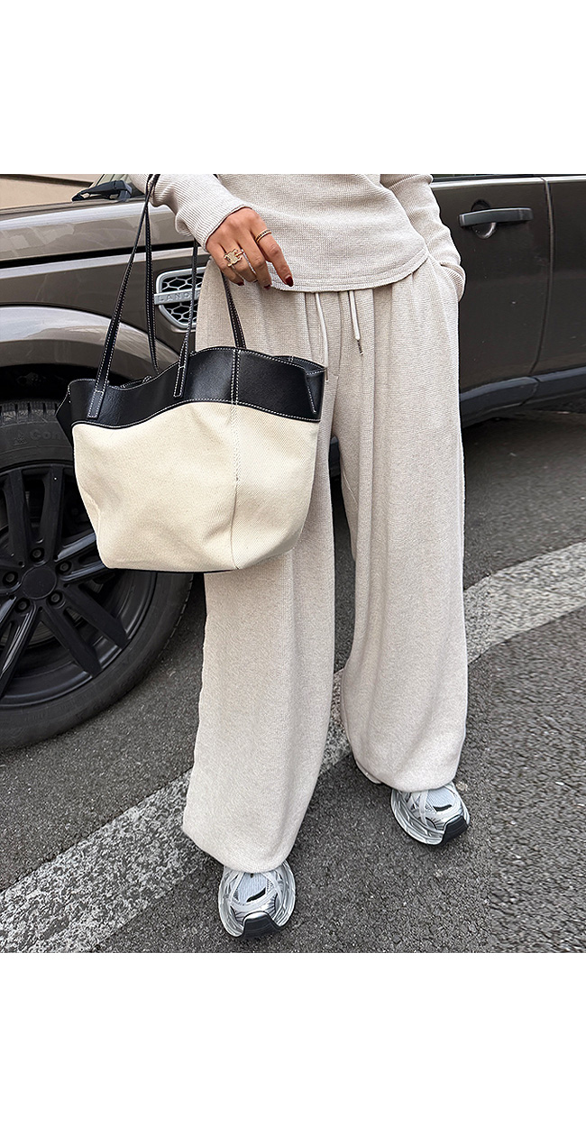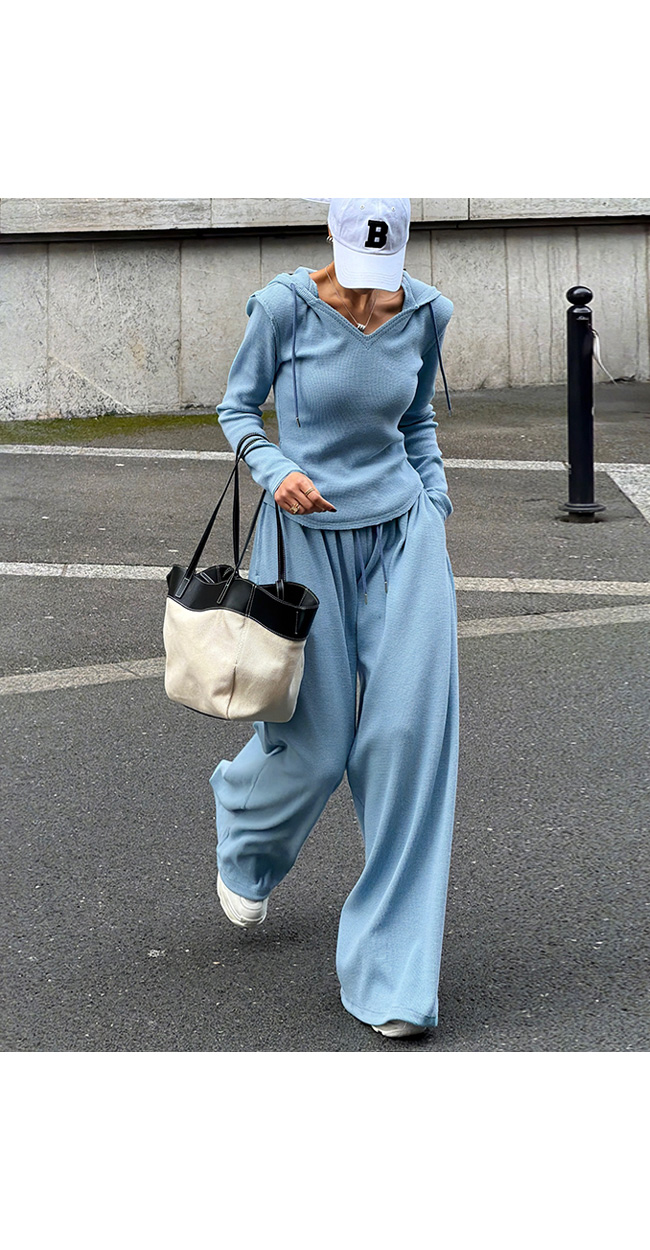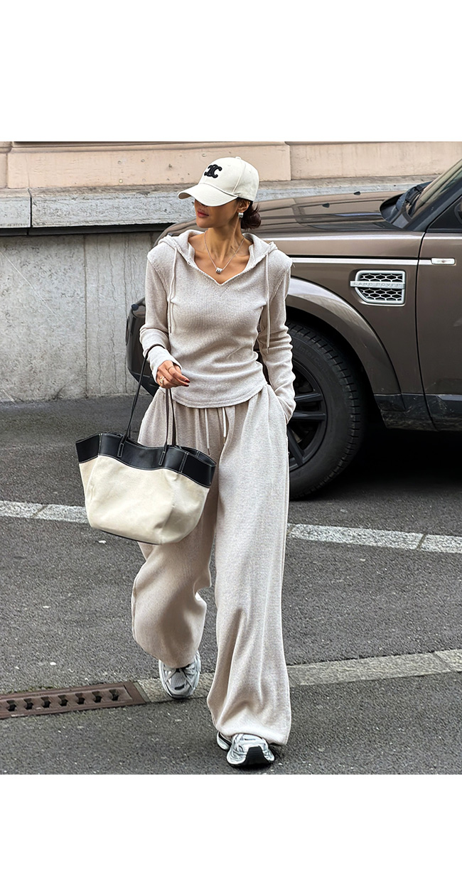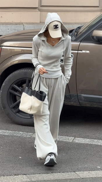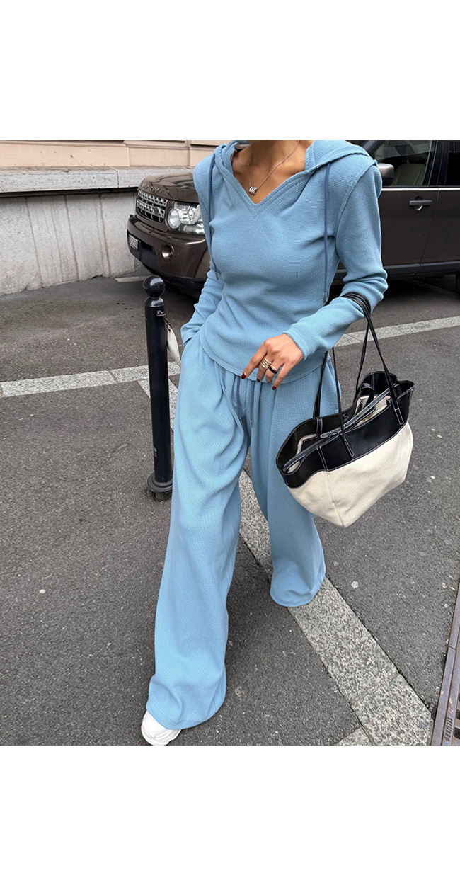 같은 원단의 팬츠와 셋업으로 연출하면