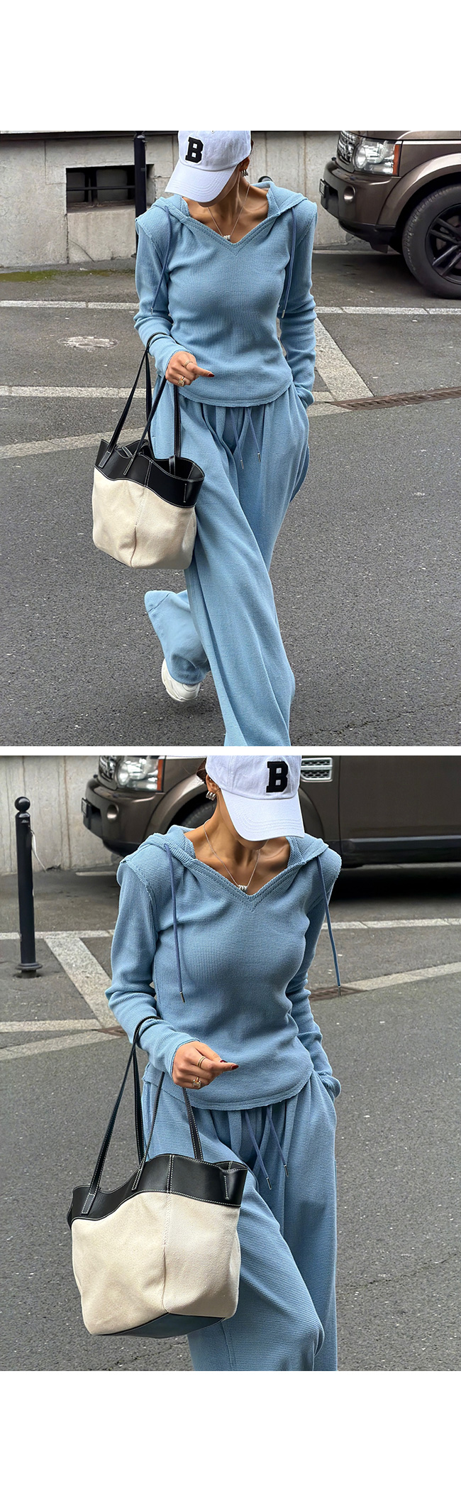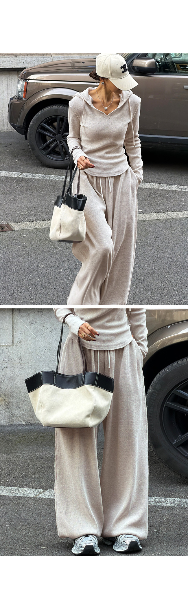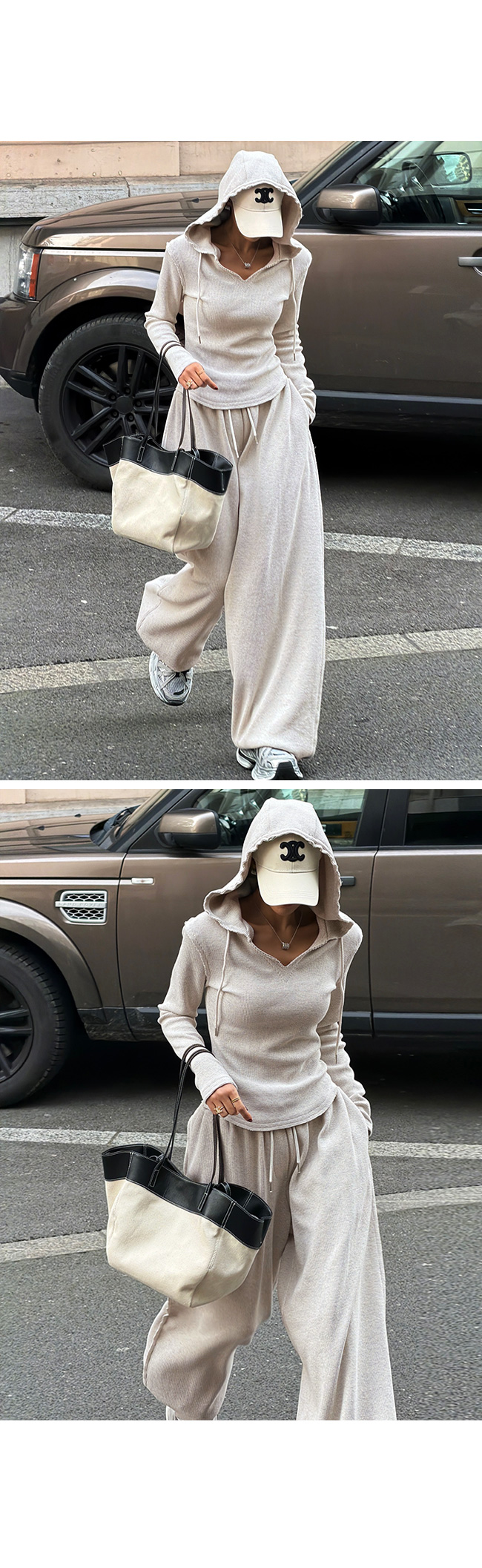 후드 티셔츠와 셋업으로 연출하면