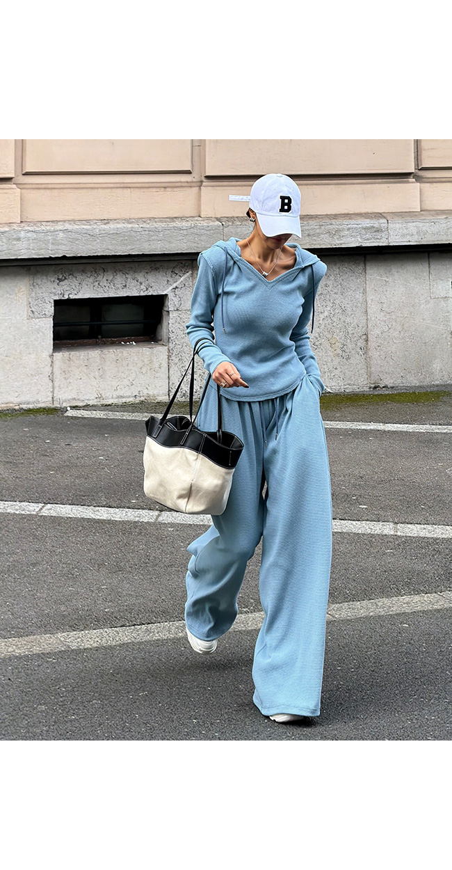 상의와 동일한 와플 텍스처 원단으로 제작되어