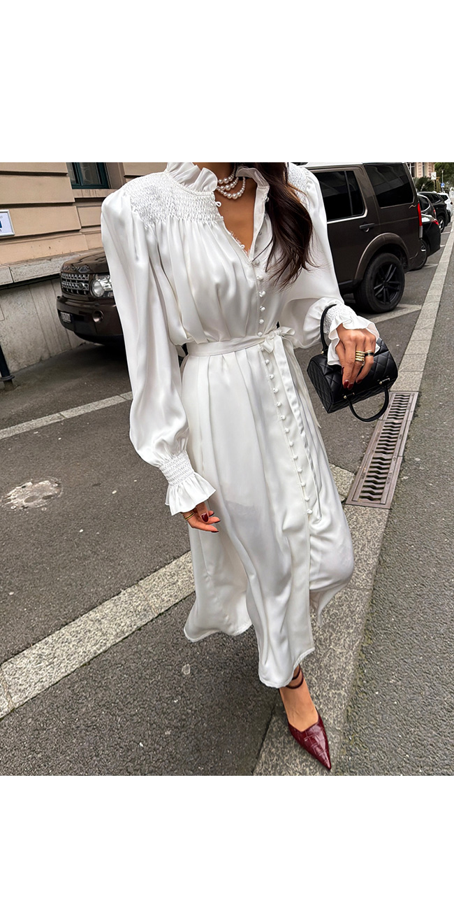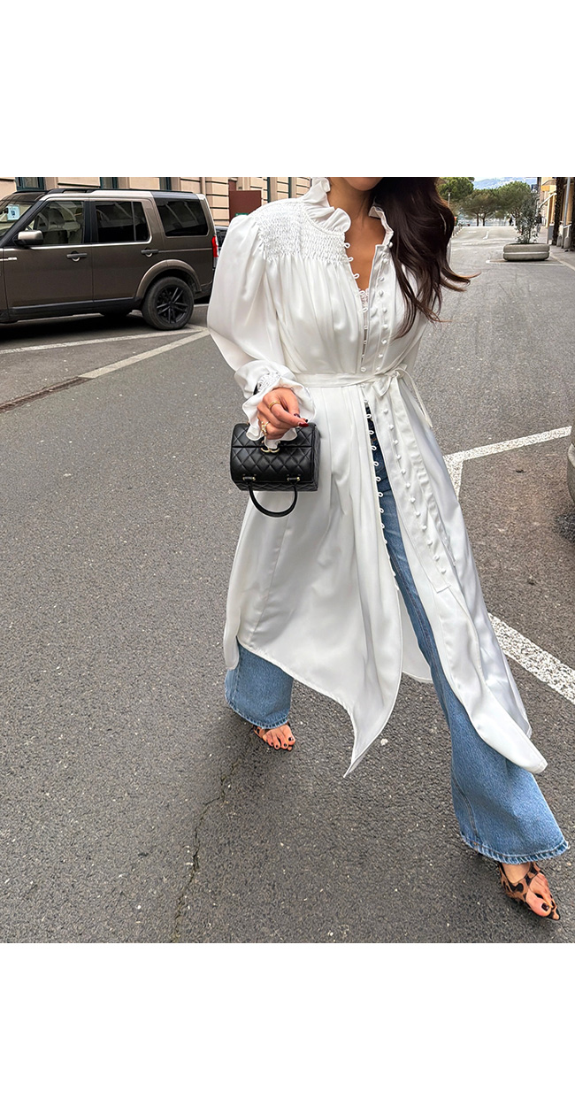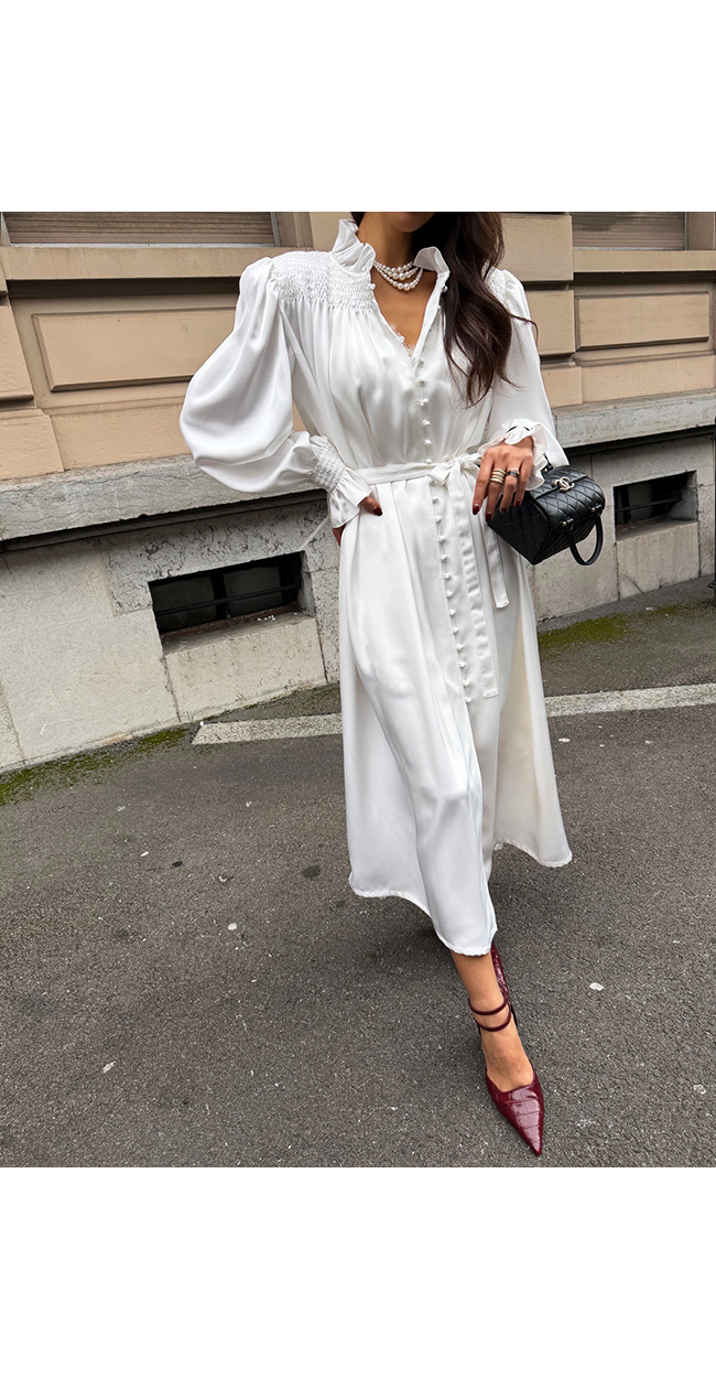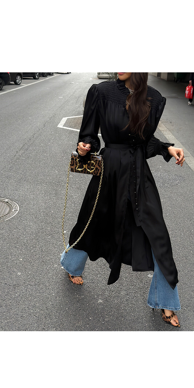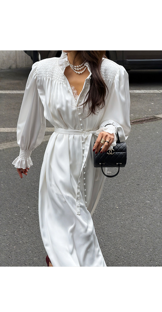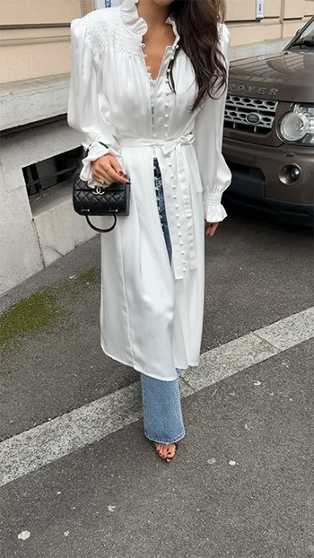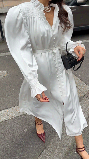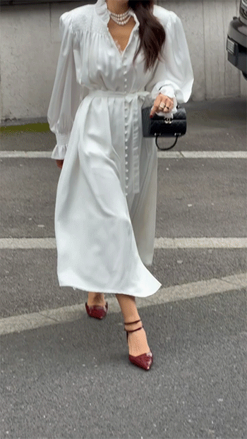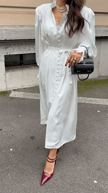 롱한 기장감으로 우아한 분위기를 연출하면서도