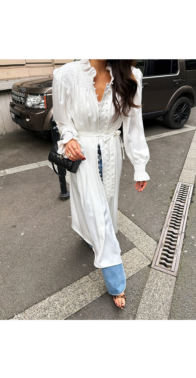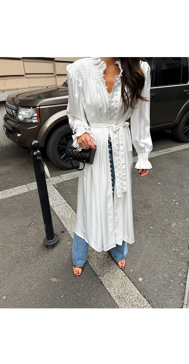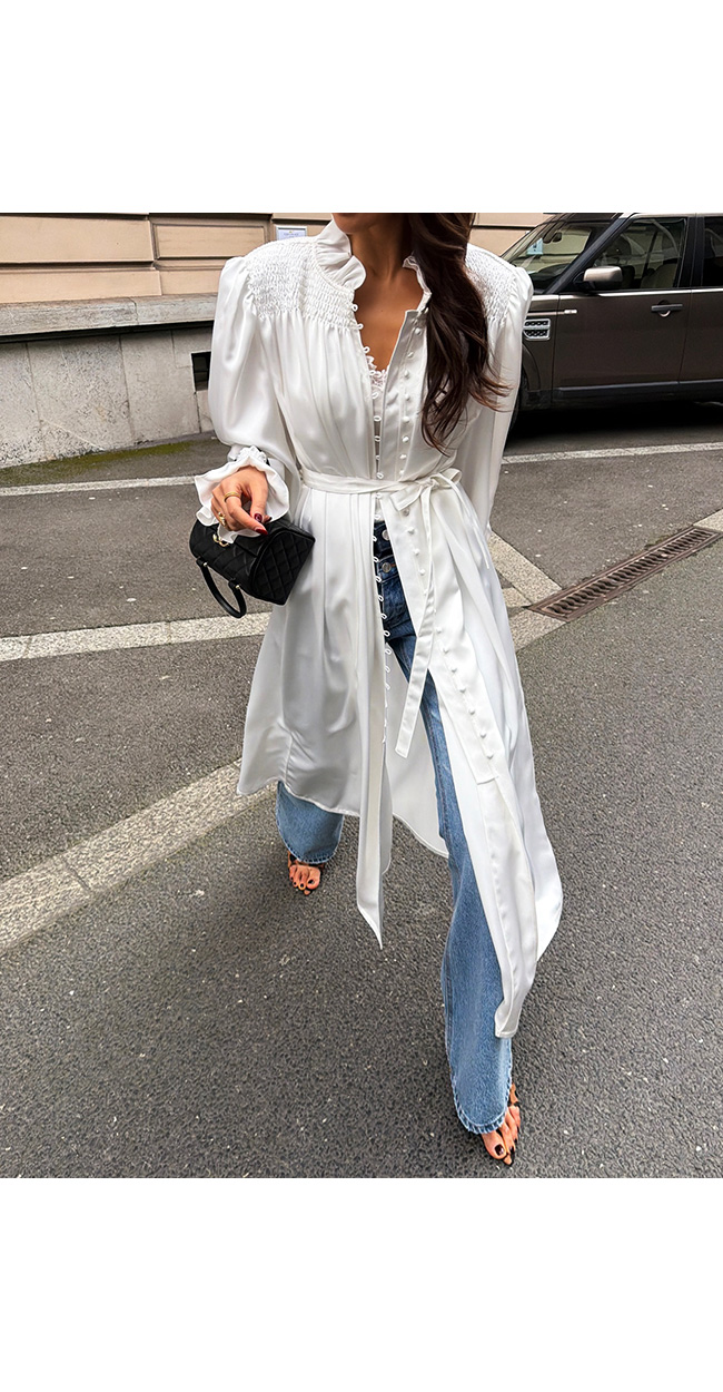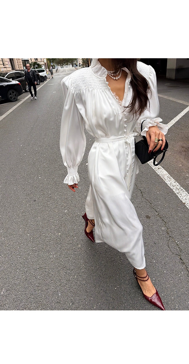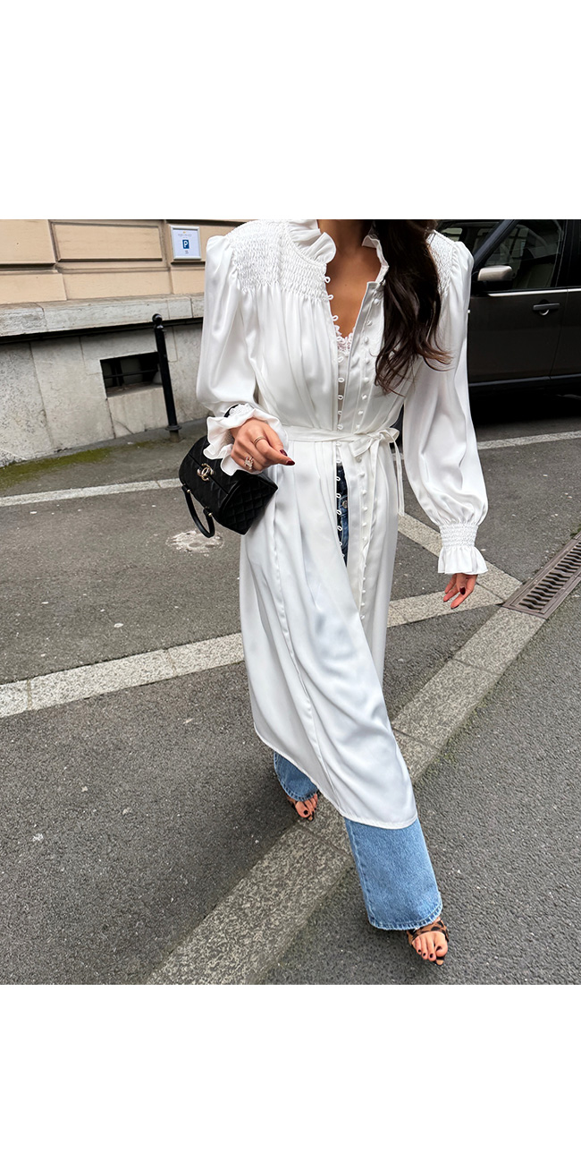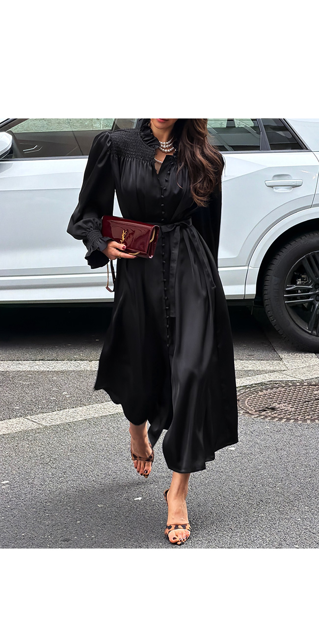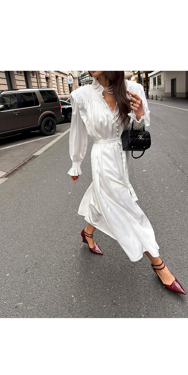 롱한 기장감으로 우아한 분위기를 연출하면서도