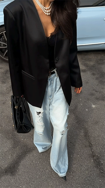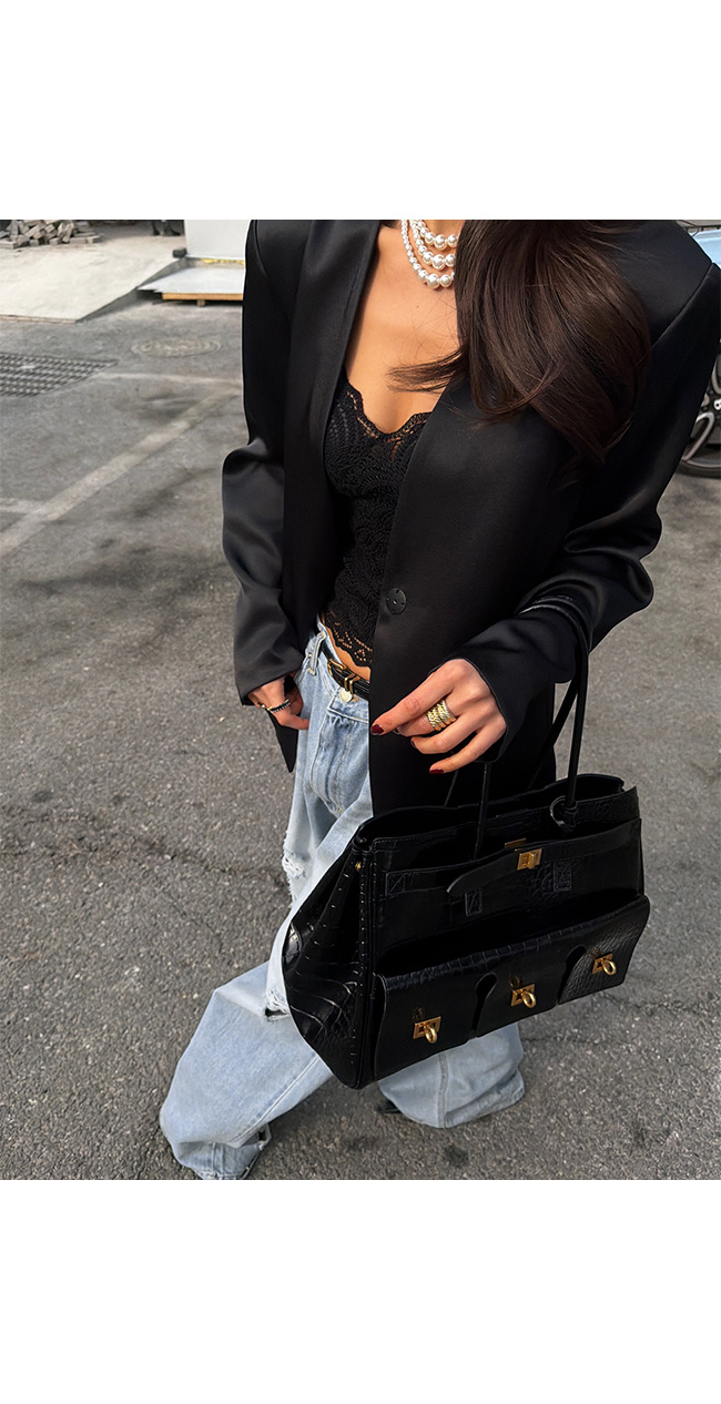 어깨 라인을 안정감 있게 잡아주는 구조적인 핏이 더해져