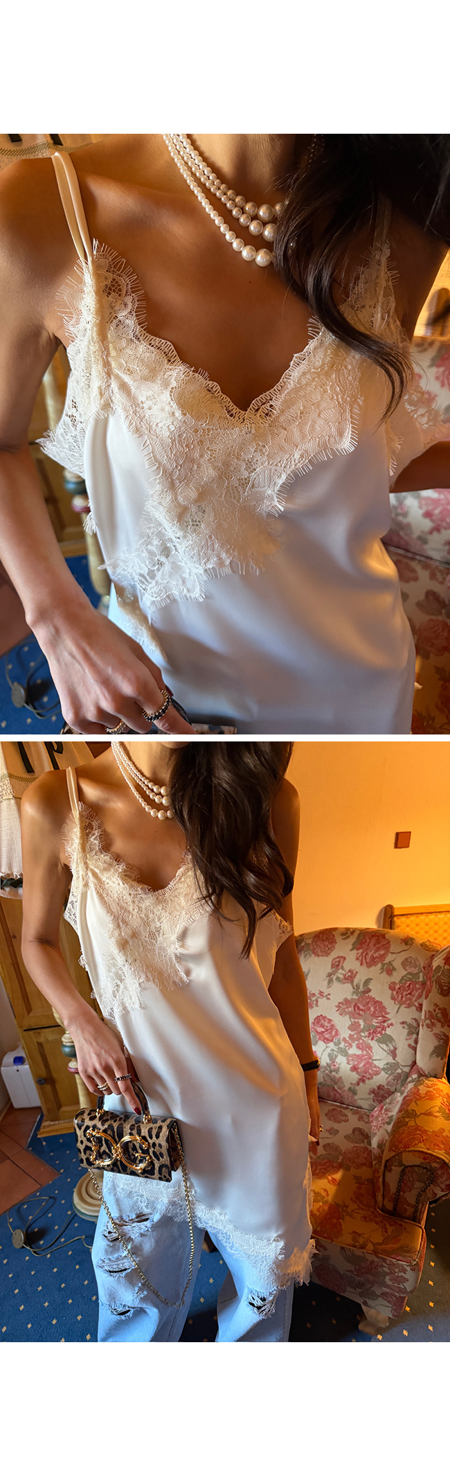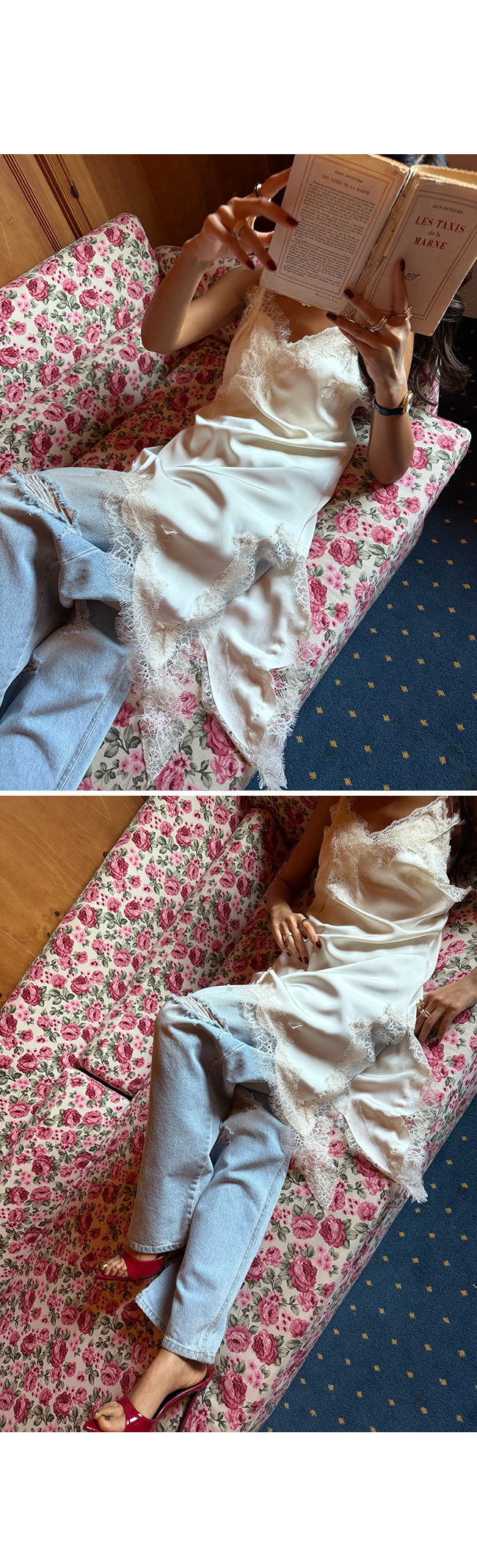 얇은 스트랩 디자인으로 쇄골과 어깨 라인을 여리하게 드러내주며,